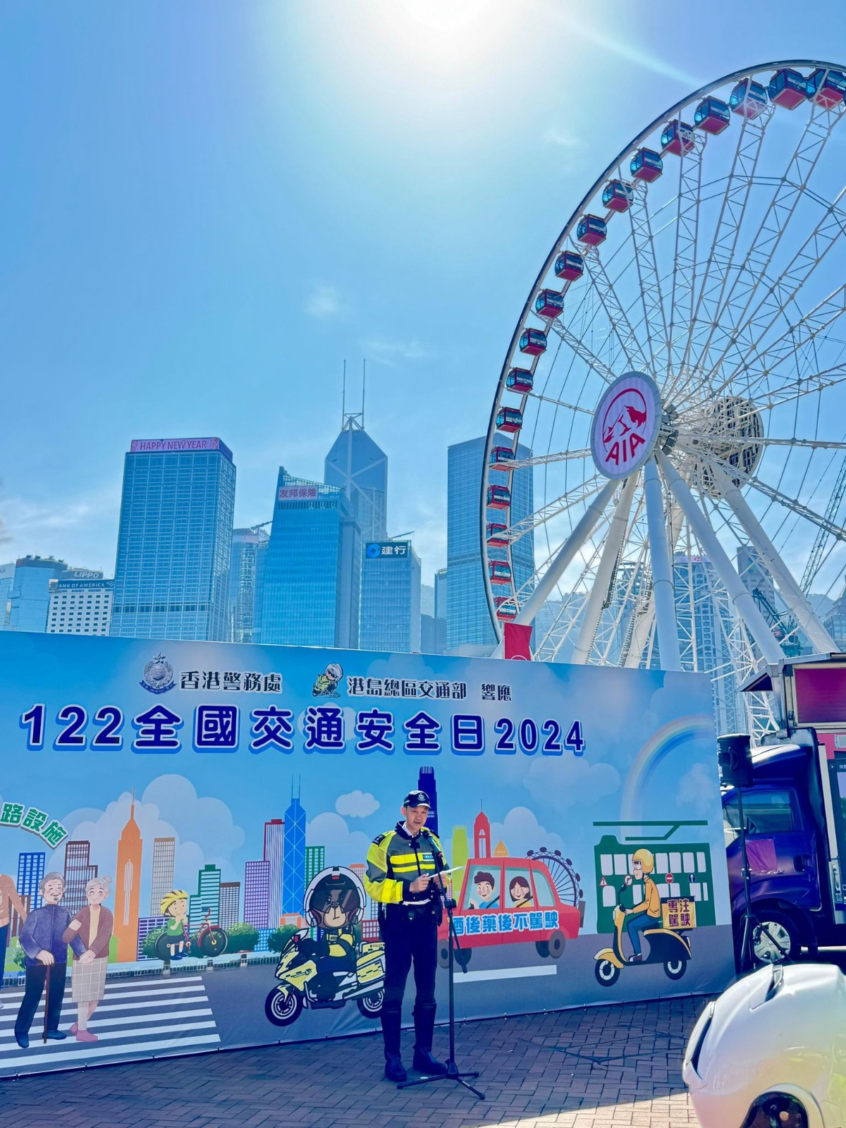 為響應(yīng)12月2日全國(guó)交通安全日,港島總區(qū)交通部今日(2日)在港島各地區(qū)舉辦宣傳活動(dòng)。自2012年開(kāi)始,國(guó)務(wù)院將每年的12月2日定為全國(guó)交通安全日,今年是第13年,以「文明交通,攜手共創(chuàng)」為主題。