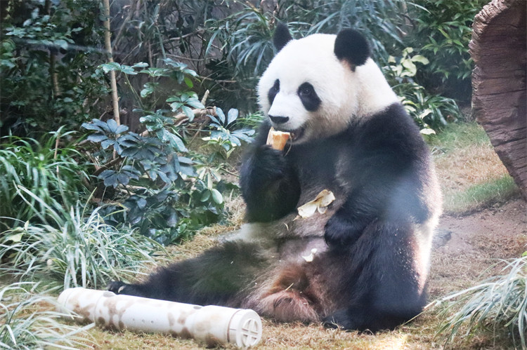 海洋公園表示,一對大熊貓的適應(yīng)生活順利,食量不錯,每日分別吃10公斤的竹葉,「安安」愛吃紅蘿蔔,「可可」就愛吃蕃薯,「可可」相比「安安」較文靜,動作亦較慢條斯理。