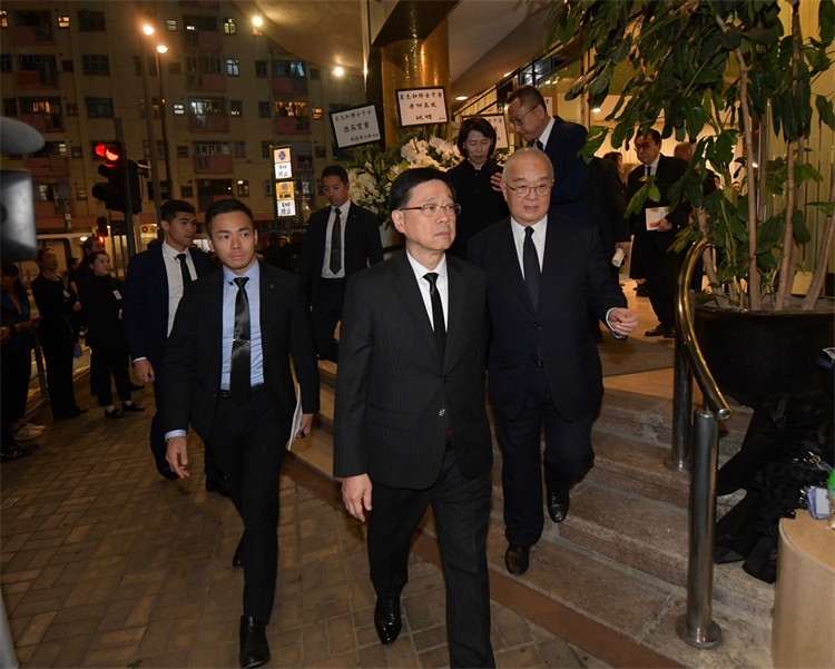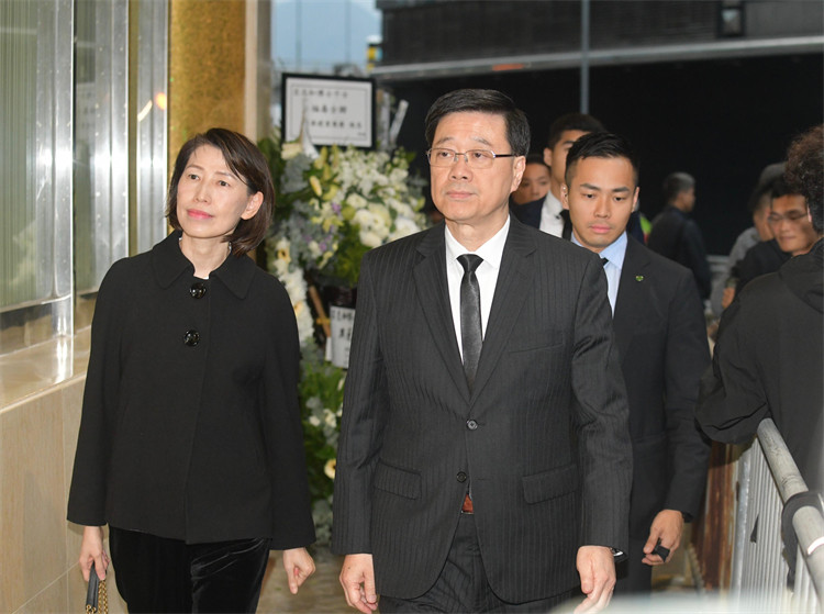 多名政商界名人傍晚起陸續(xù)抵達香港殯儀館,包括中聯(lián)辦主任鄭雁雄、行政長官李家超與特首辦主任葉文娟、行政會議召集人葉劉淑儀、行會成員李國章、律政司司長林定國、運輸及物流局局長林世雄、前行政長官曾蔭權(quán)夫婦、全國政協(xié)常委唐英年、國務院港澳辦原常務副主任陳佐洱、前基本法委員會副主任譚惠珠、前商務及經(jīng)濟發(fā)展局局長馬時亨、立法會主席梁君彥、進出口界立法會議員黃英豪、新界西北立法會議員田北辰、新界北立法會議員劉國勳、批發(fā)及零售界立法會議員邵家輝、商界立法會議員林健鋒分別到場。