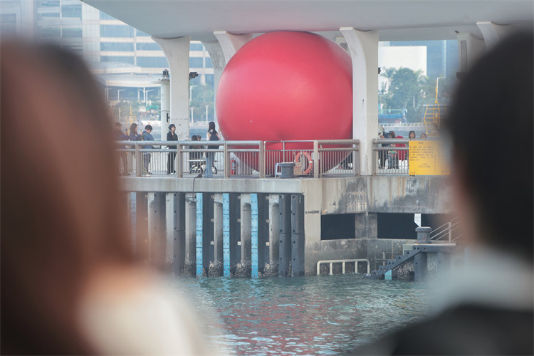 大型藝術品「紅球」今日(6日)首天抵港並在中環(huán)10號碼頭展出,放置於碼頭沿海的欄桿中間,不少市民到場參觀及拍照。「紅球」於即日起至本月15日在香港的10個不同地點巡展,為期10天,展覽免費開放。