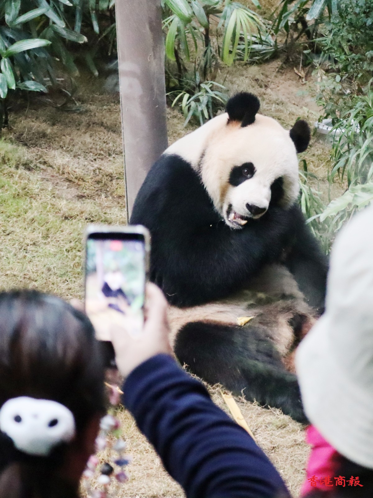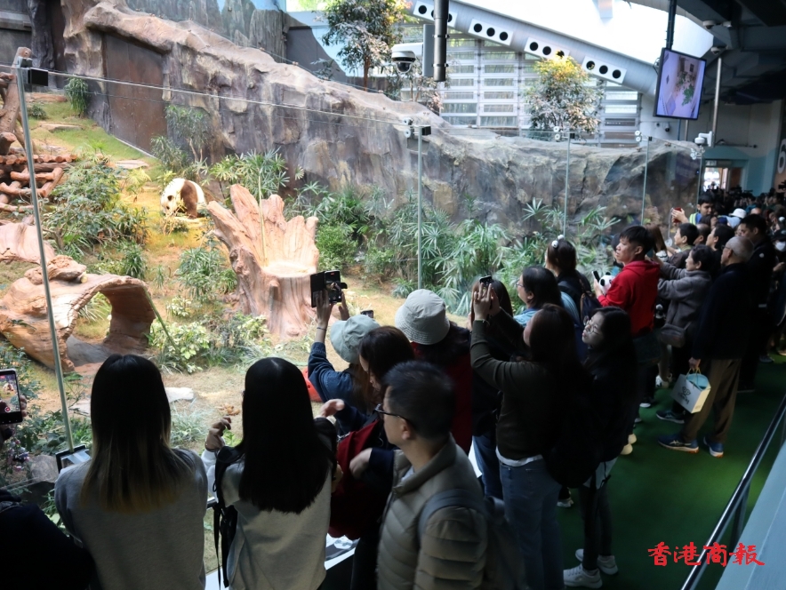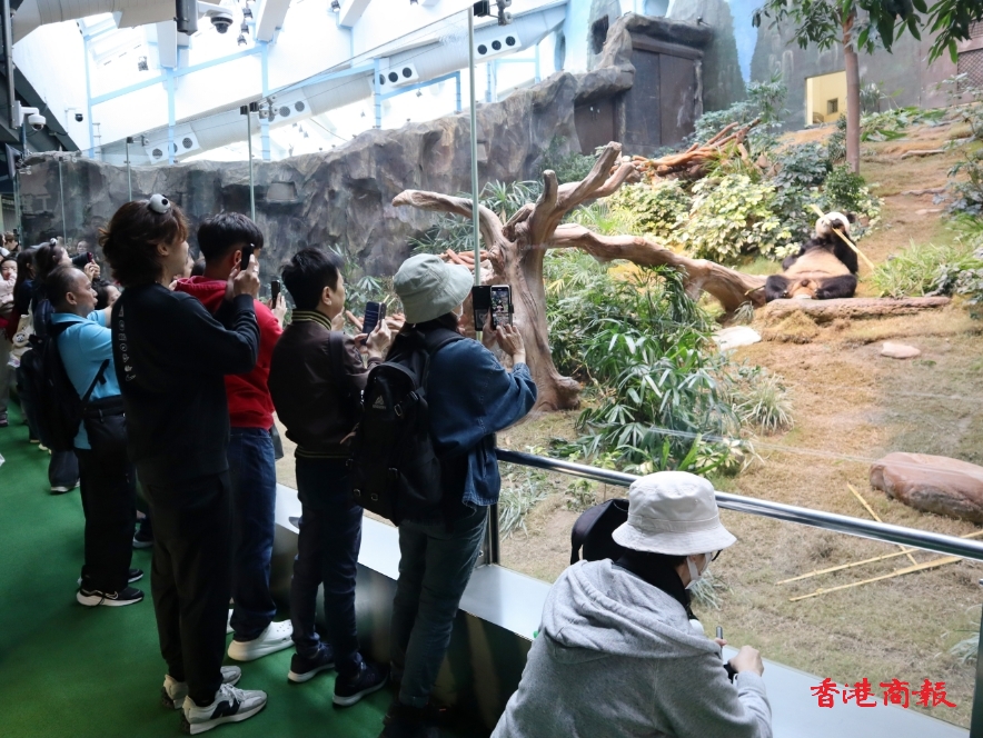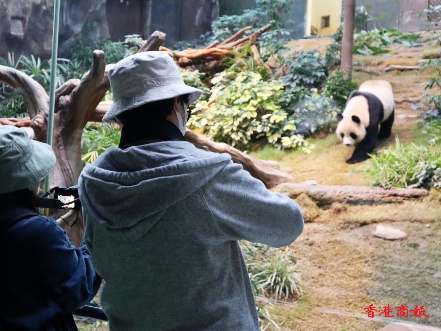 觀眾中有不少是一家大細(xì)、也有三五知己結(jié)伴同來(lái)、更有不少內(nèi)地或外地的旅客,他們都覺(jué)得能看到大熊貓很開(kāi)心、很興奮。