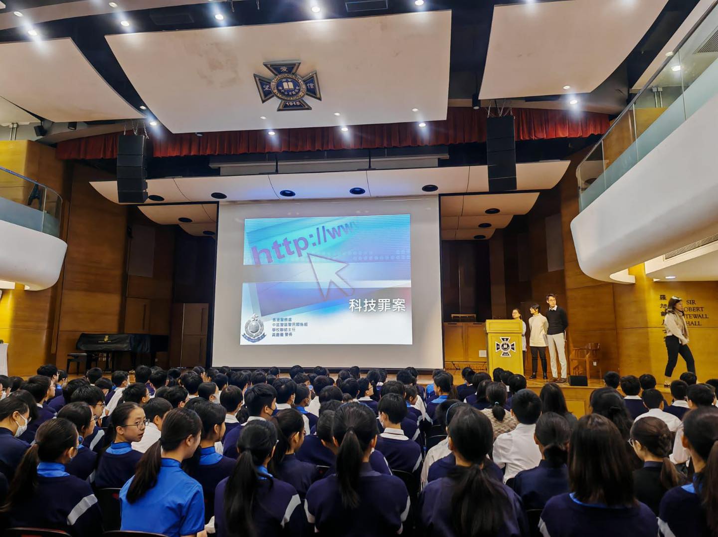 中區(qū)警區(qū)警民關(guān)係組學(xué)校聯(lián)絡(luò)主任今日(10日)到聖保羅男女中學(xué),舉辦校園防罪講座,中二級共190名師生參與。講座主要講解有關(guān)科技罪行手法、防騙知識及設(shè)定防騙伺服器作自我保護(hù)方法。