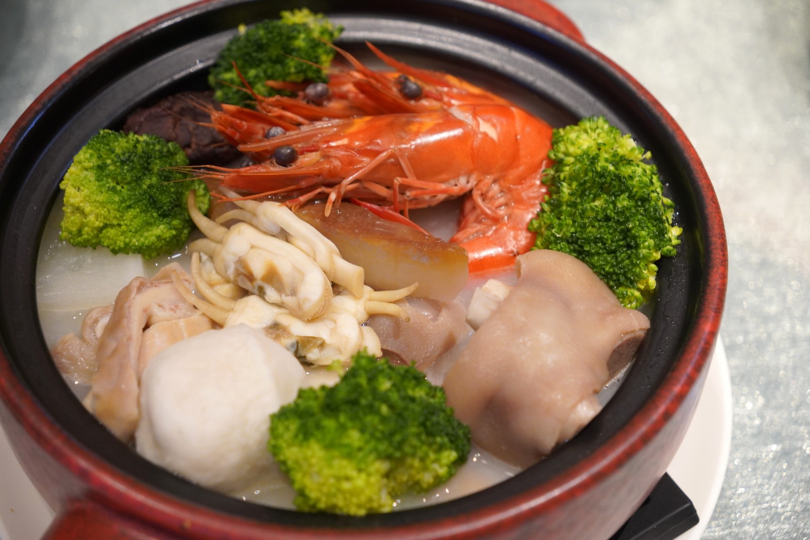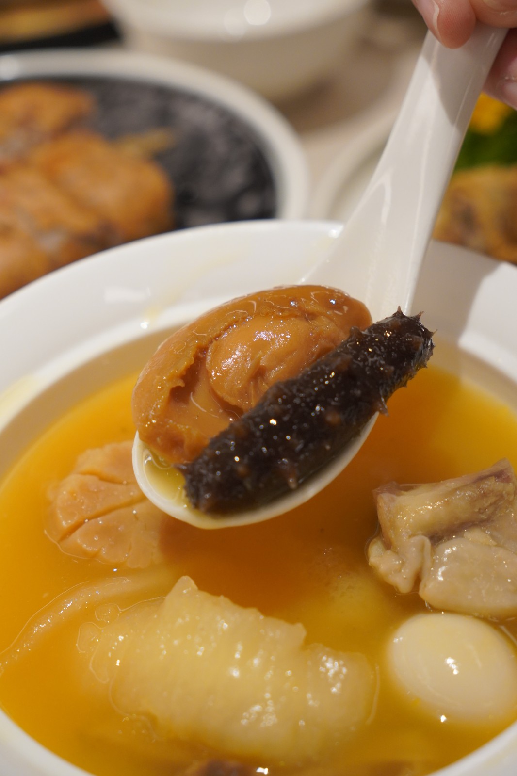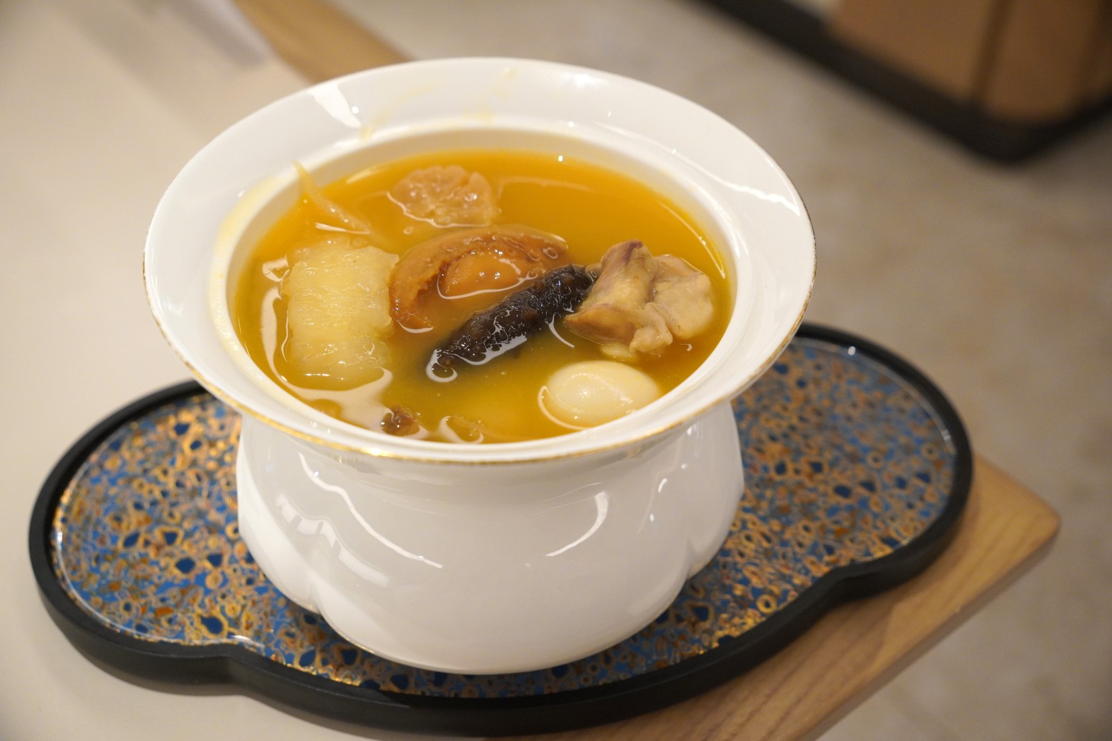 金湯佛跳牆十分足料,湯呈金黃琥珀色,讓人食指大動(dòng)。