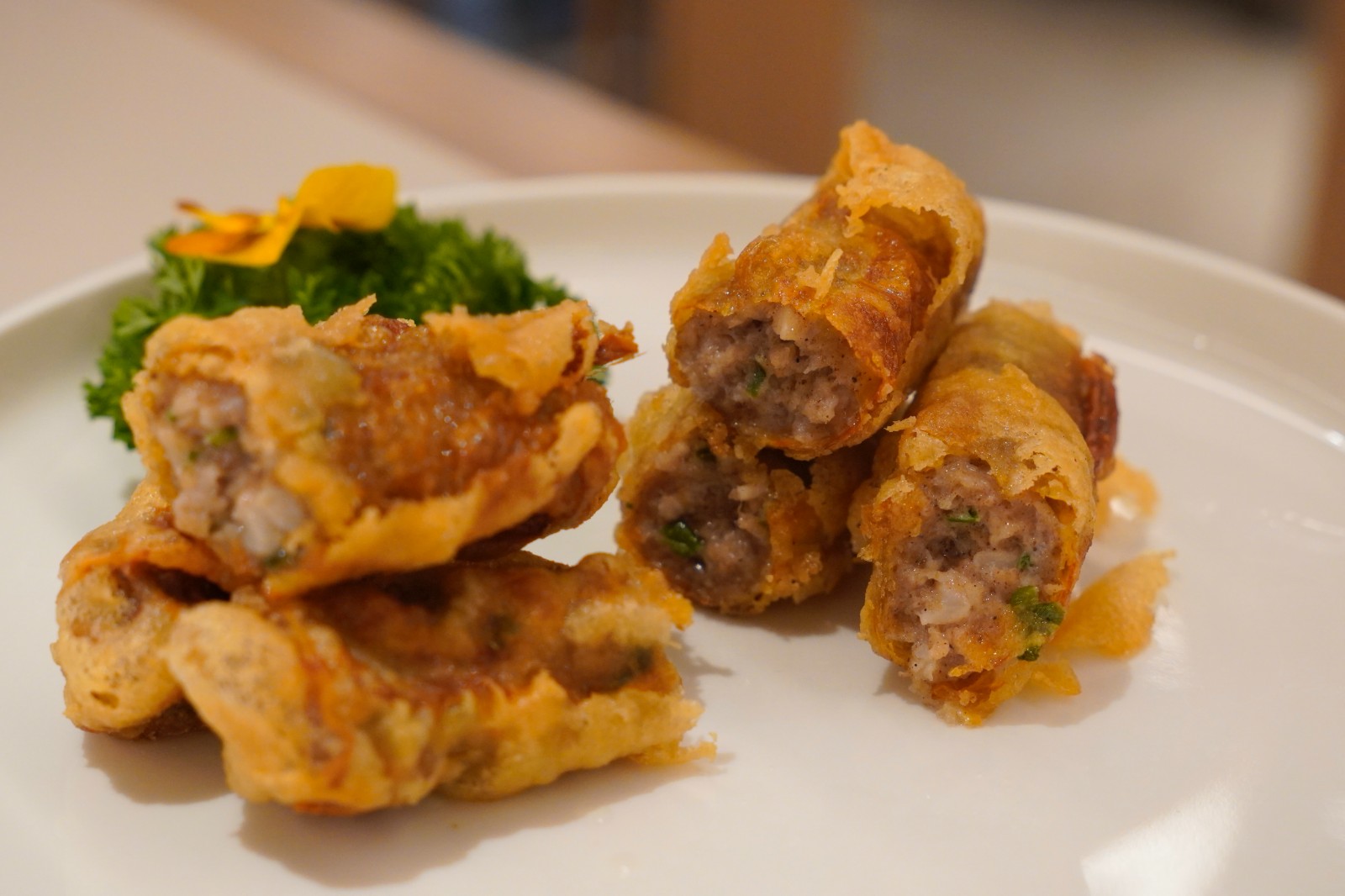 餐廳新品閩南五香卷香、酥、脆、鮮,可作開胃前菜。