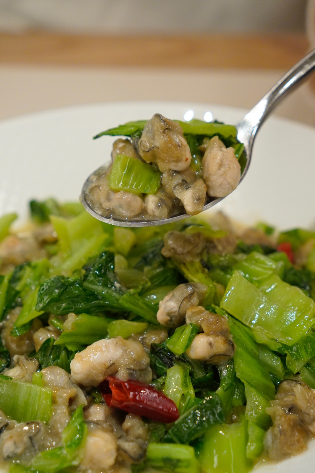 蒜青炒海蠣健康開胃,相當(dāng)下飯。
