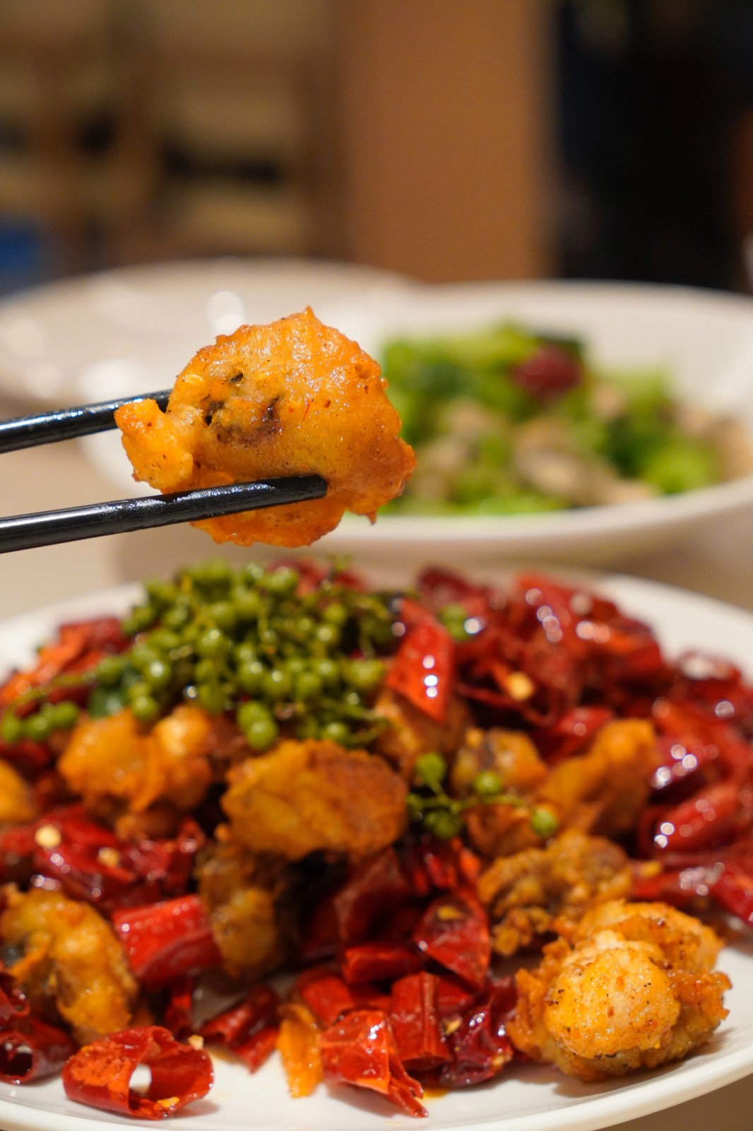 辣子鮮海蠣雖是炸物,吃起來卻不油膩,味道微麻微辣。