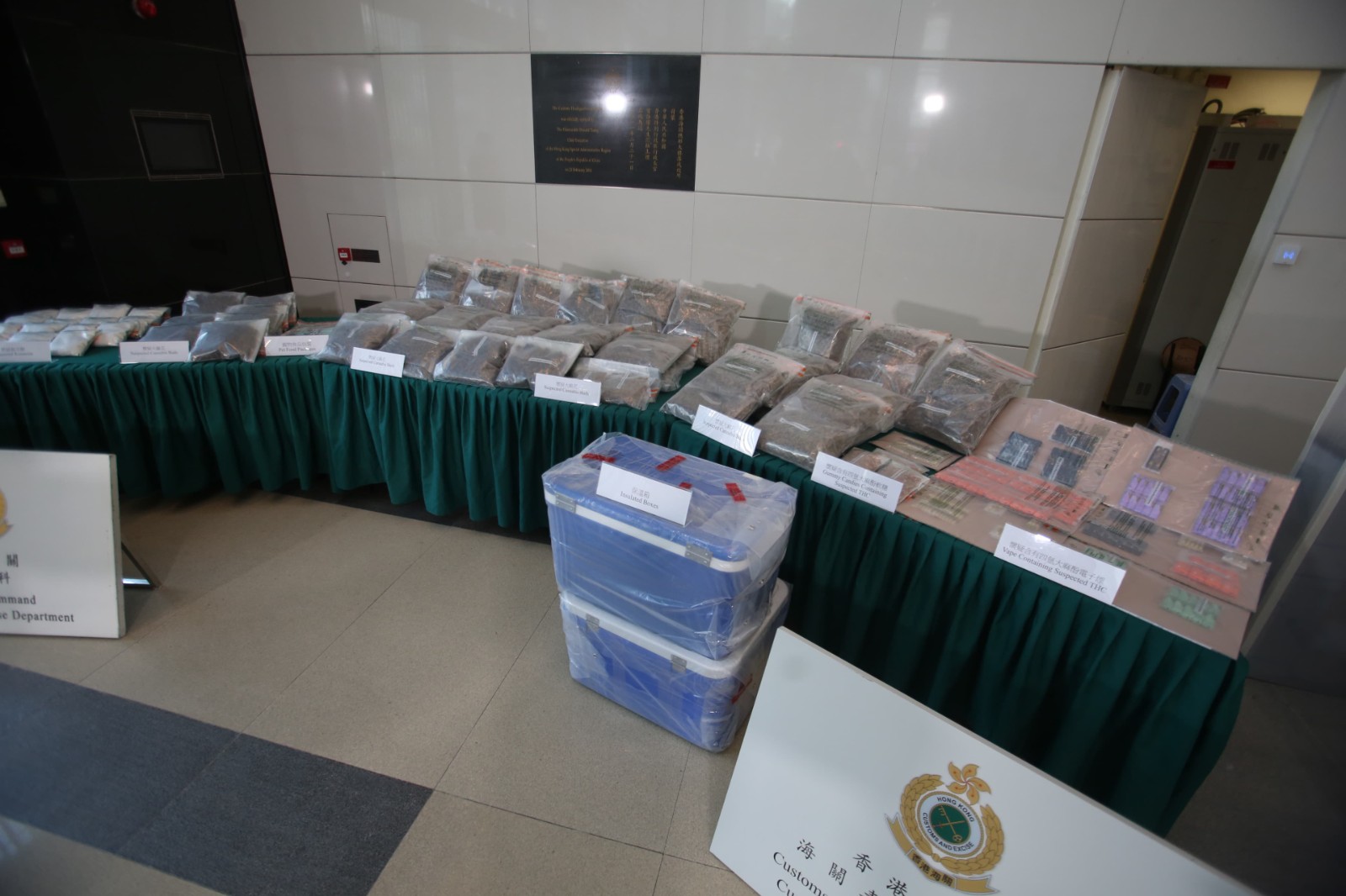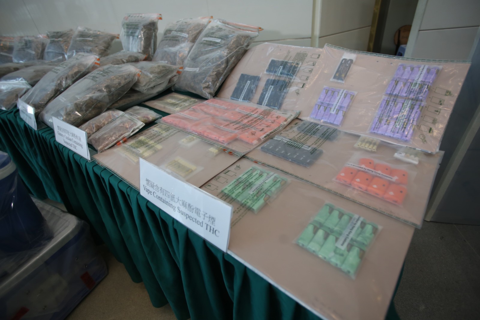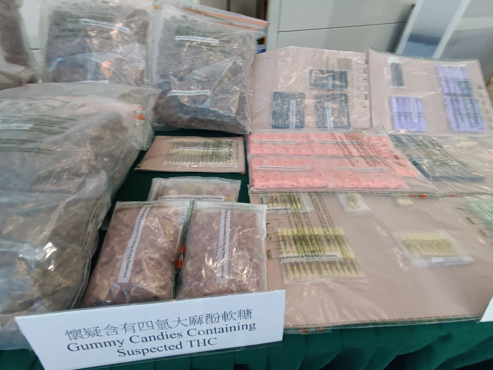 海關(guān)針對聖誕和元旦假期本地對毒品的需求,在本周展開執(zhí)法行動,分別荃灣、元朗及油塘搗破3個毒品儲存?zhèn)},以及偵破一宗航空旅客販毒案,檢獲氯胺酮、大麻花和含四氫大麻酚的軟糖和電子煙,市值約1500萬元,拘捕3名男子,現(xiàn)正追緝背後販毒集團。