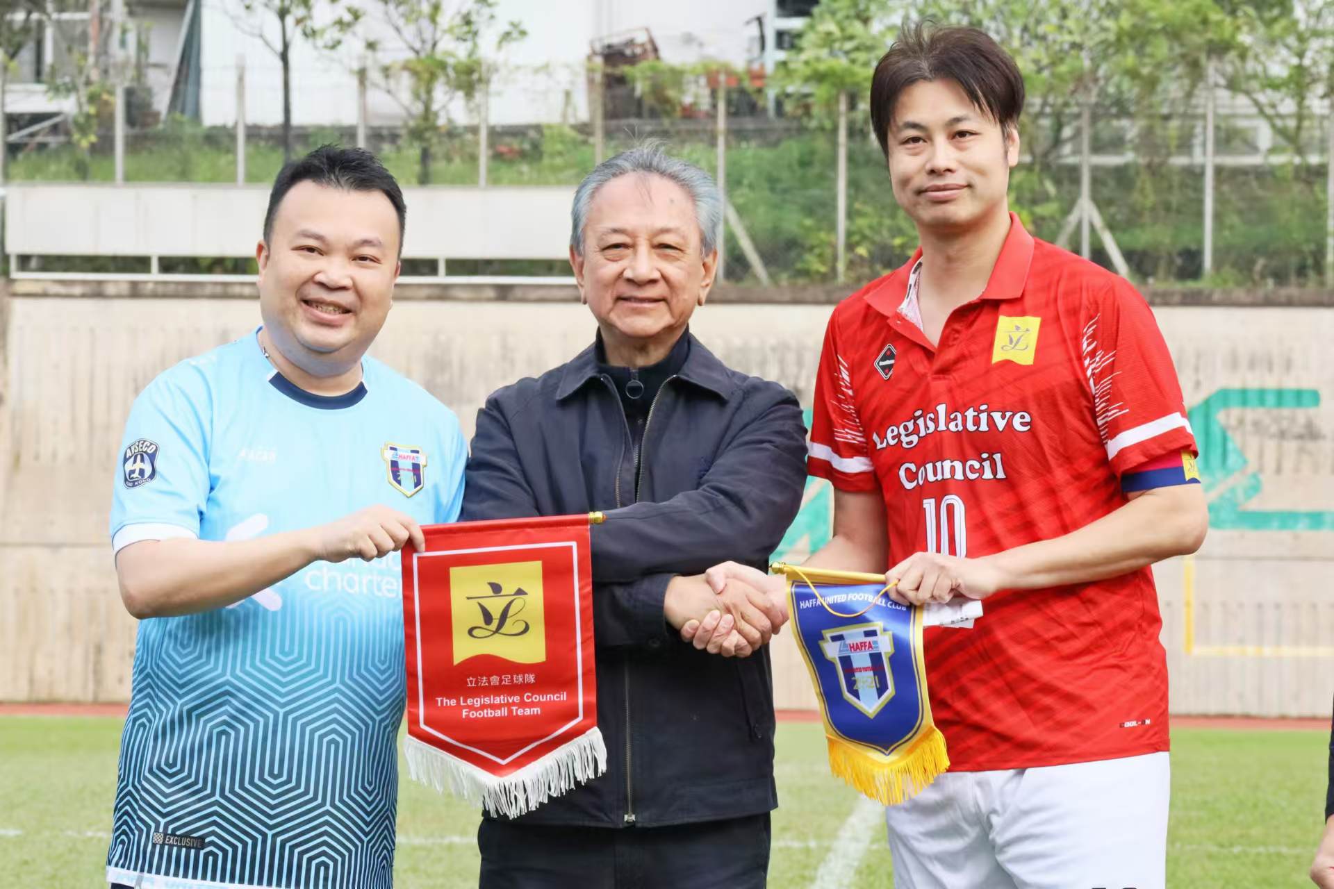 立法會(huì)足球隊(duì)今午(15日)在斧山道運(yùn)動(dòng)場(chǎng),和香港貨運(yùn)物流業(yè)協(xié)會(huì)足球隊(duì)進(jìn)行友誼賽,雙方賽前先禮後兵,交換錦旗和進(jìn)行開球禮。立法會(huì)足球隊(duì)?wèi){上半場(chǎng)末段入球,加上下半場(chǎng)禁區(qū)內(nèi)兩個(gè)攻勢(shì),最終以3比1擊敗有隊(duì)員遠(yuǎn)射破蛋的香港貨運(yùn)物流業(yè)協(xié)會(huì)。