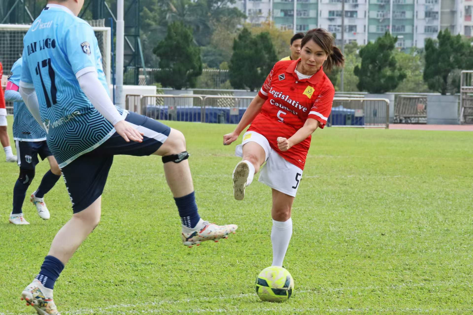江玉歡賽後受訪時(shí)表示,今次是她首次參加足球賽事,很開心和立法會(huì)同事打成一片,同時(shí)十分享受過程,希望未來再有機(jī)會(huì)參與其中。(記者 葉家亨)