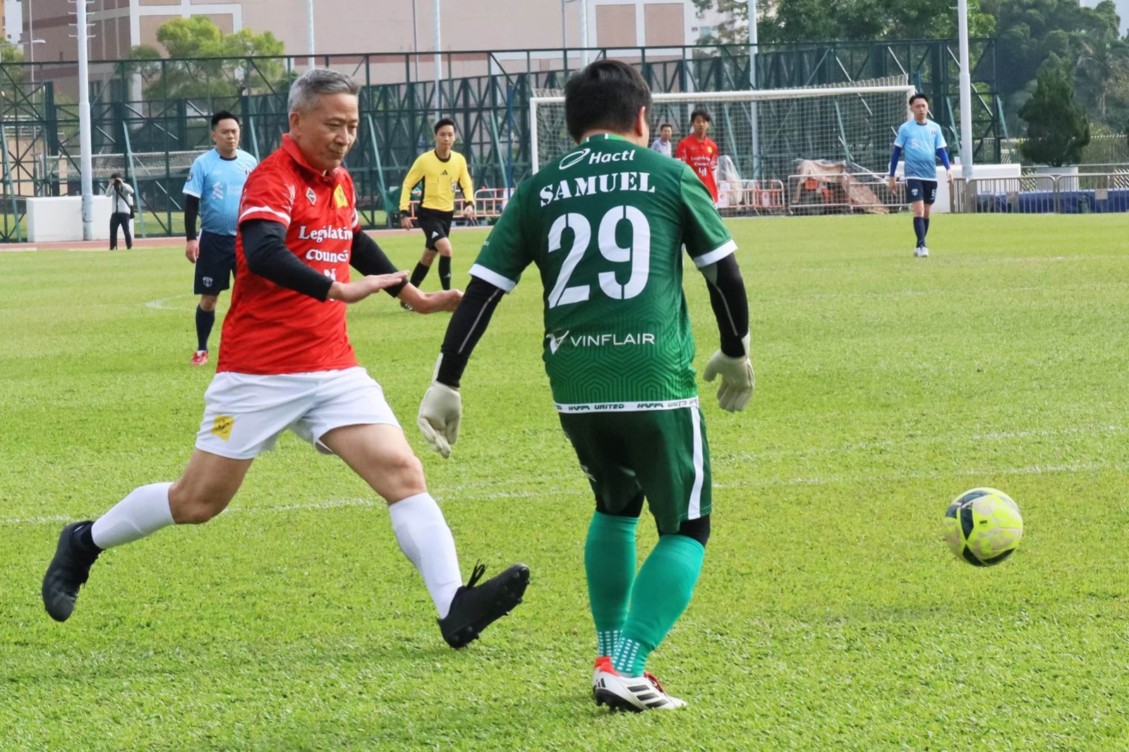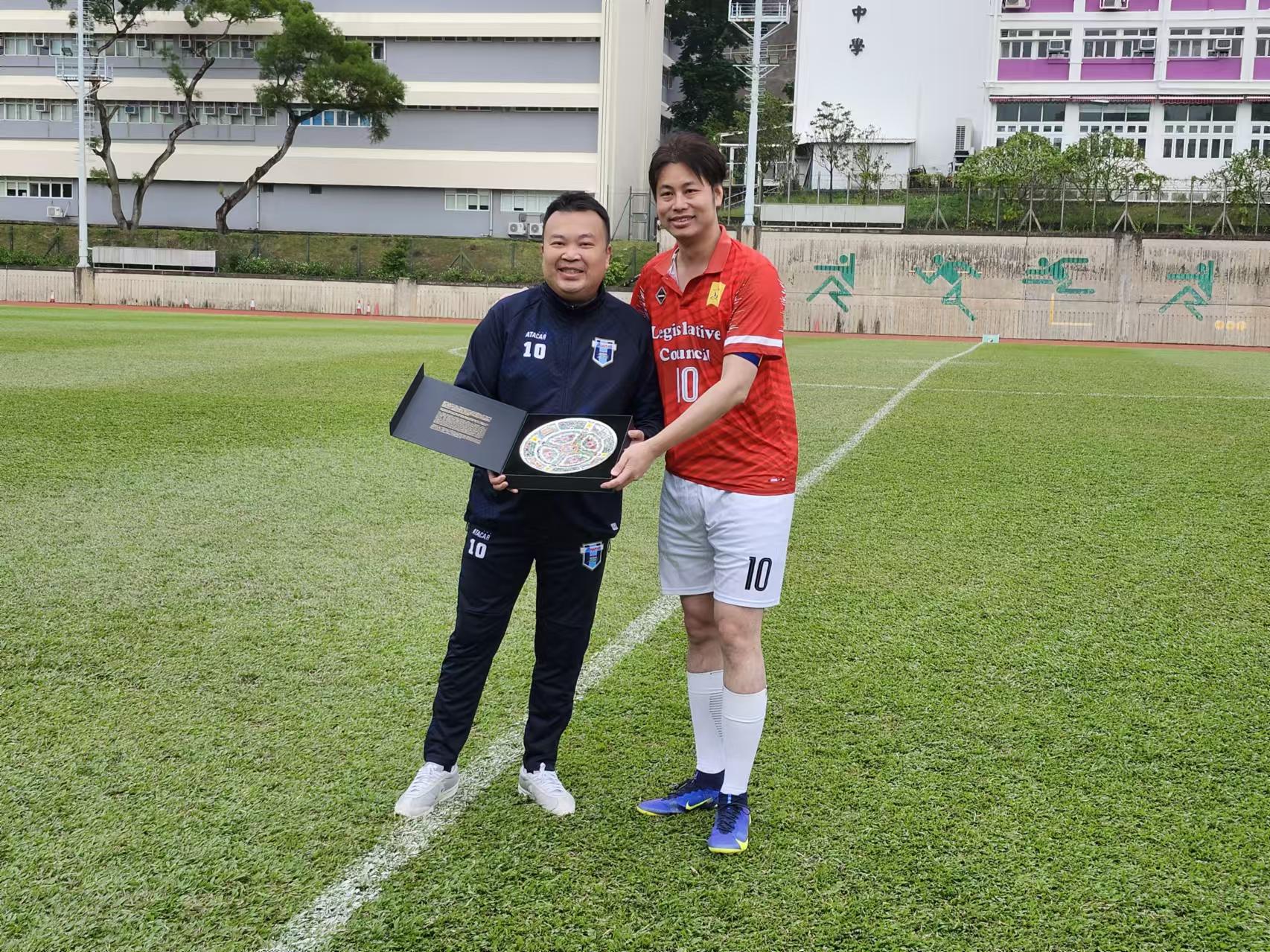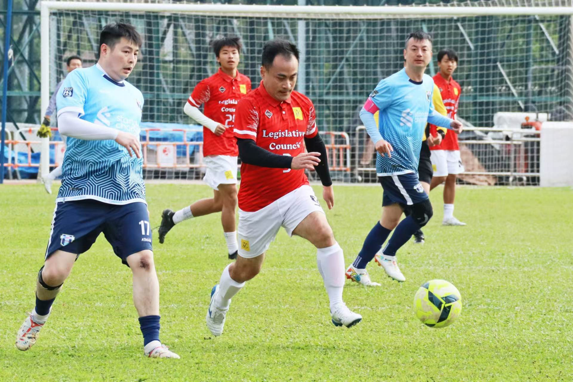 立法會(huì)足球隊(duì)在友誼賽,以3比1擊敗香港貨運(yùn)物流業(yè)協(xié)會(huì)。(記者 葉家亨攝)