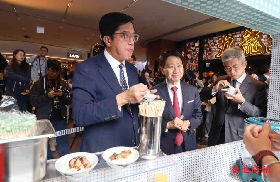 財(cái)政司副司長(zhǎng)黃偉綸對(duì)手中的叉燒飯讚不絕口