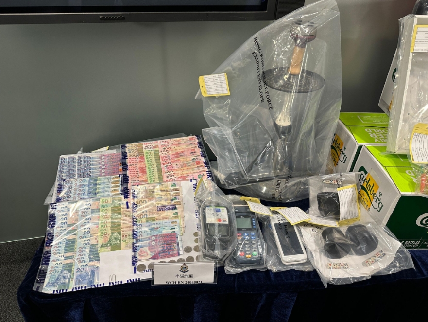 灣仔警區(qū)反三合會行動組督察李家豪表示,根據(jù)情報灣仔區(qū)內(nèi)有一間黑社會團(tuán)夥操控的無牌酒吧及水煙館,以水煙和不同口味的酒類吸引年青人消遣,大門安置電子密碼鎖,顧客要由熟人介紹才可進(jìn)入。昨日(15日)警方派出探員喬裝顧客,進(jìn)入目標(biāo)單位搜證,拘捕4男2女(21至35歲),其中一名男子涉嫌「管理無牌賣酒場所」,其餘5人則涉嫌「在無牌賣酒場所飲酒」,同時發(fā)出6張針對禁止吸煙區(qū)吸煙的定額罰款通知書,檢獲160支酒、220支吸食水煙工具及4000元現(xiàn)金,警方亦聯(lián)同控?zé)熮k人員突擊搜查多個持酒牌場所,發(fā)出7張定額告票。(記者區(qū)天海)