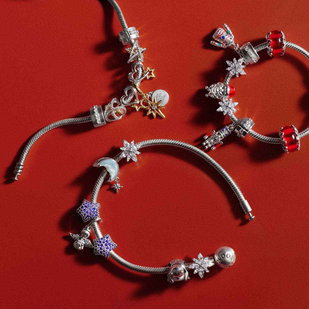 Moments 系列節(jié)日新品以星光作為靈感,首次融入北極星元素,融合多種材質(zhì)與工藝,推出全新設(shè)計(jì)。925 銀、鍍14k 金、手工吹製的Murano 琉璃以及實(shí)驗(yàn)室人造鑽石,構(gòu)成了這一系列的基礎(chǔ)元素。設(shè)計(jì)上,北極星元素象徵指引與守護(hù),例如鑲嵌實(shí)驗(yàn)室人造鑽石的北極星吊飾,或是刻有「GOOD THINGS ARE COMING」字樣的圓牌飾品,展現(xiàn)節(jié)日元素。