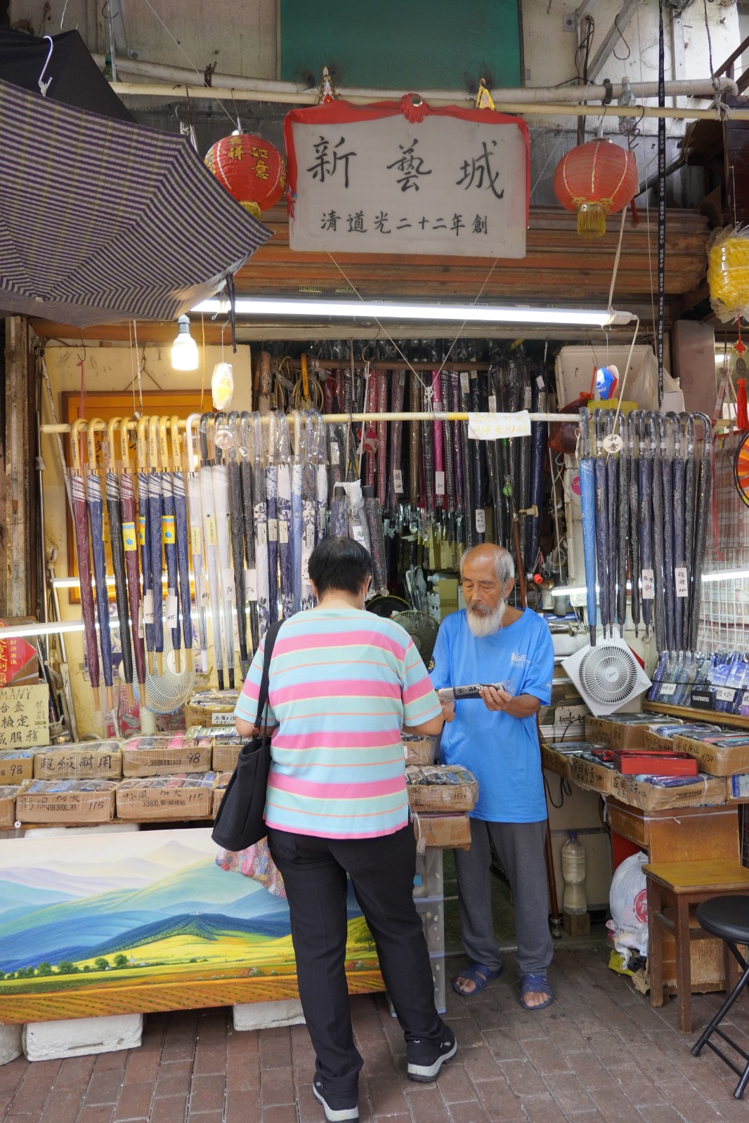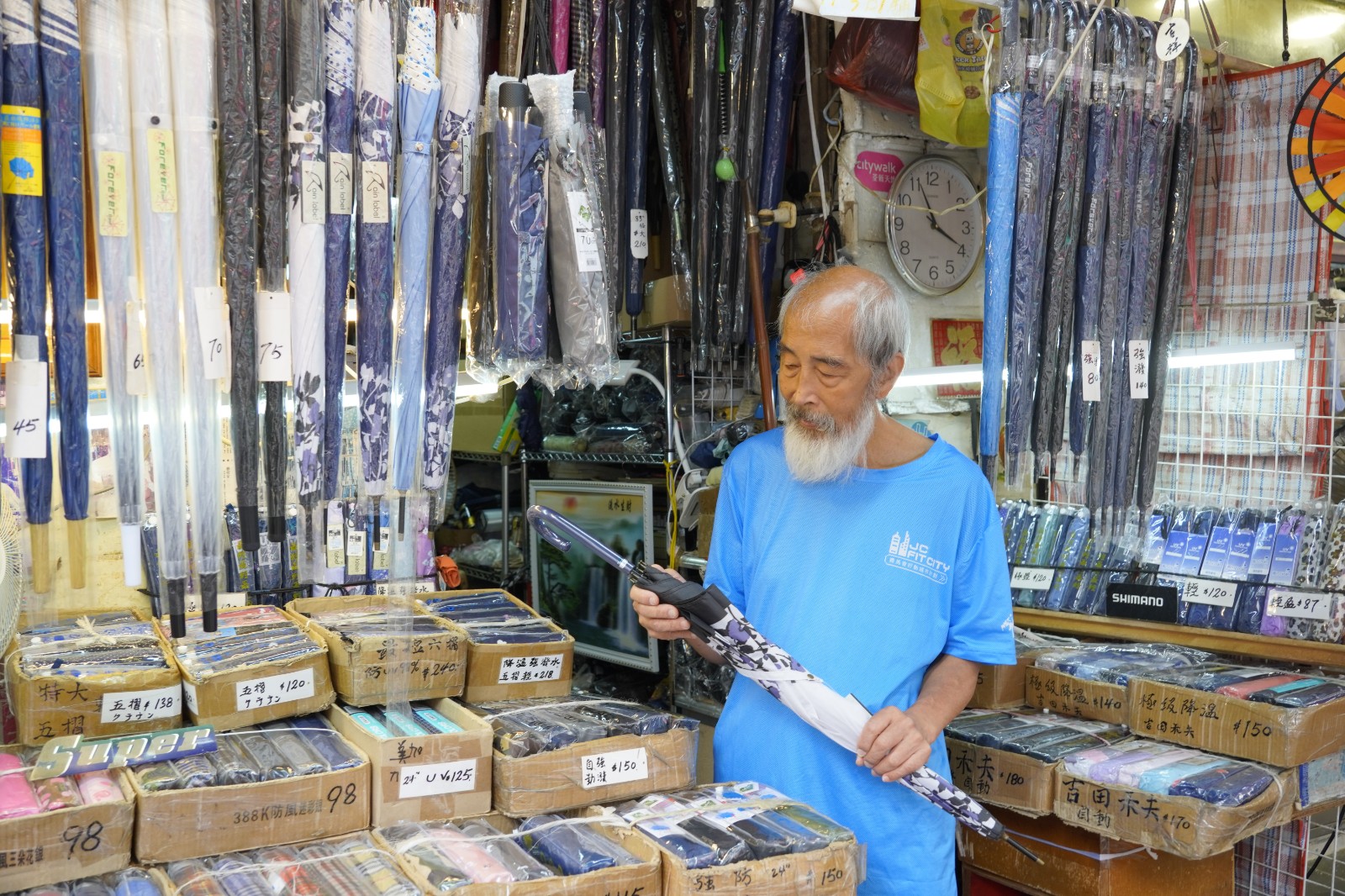 威哥的成長環(huán)境不容易,教他學(xué)懂何謂珍惜。而伴隨他長大的,是一堆雨傘。看著父親在店內(nèi)、家中為人修補雨傘,威哥作為家業(yè)第五代傳人,很感激前人留下的手藝:「我上世紀80年代接手店舖,決定恢復(fù)家業(yè)傳統(tǒng),只賣雨具及維修雨傘,並搬到現(xiàn)址。不過因為成本問題,不再賣手製雨傘。」憑藉對雨傘的認識,威哥從製傘廠引入耐用的伸縮傘、長傘、防風(fēng)傘等不同顏色、不同質(zhì)料的雨具,深受街坊歡迎。後來流行防紫外線雨傘,傘除了遮風(fēng)擋雨又多了一個防曬功能,店舖生意逐漸好轉(zhuǎn),不用再望天打卦何時下雨。