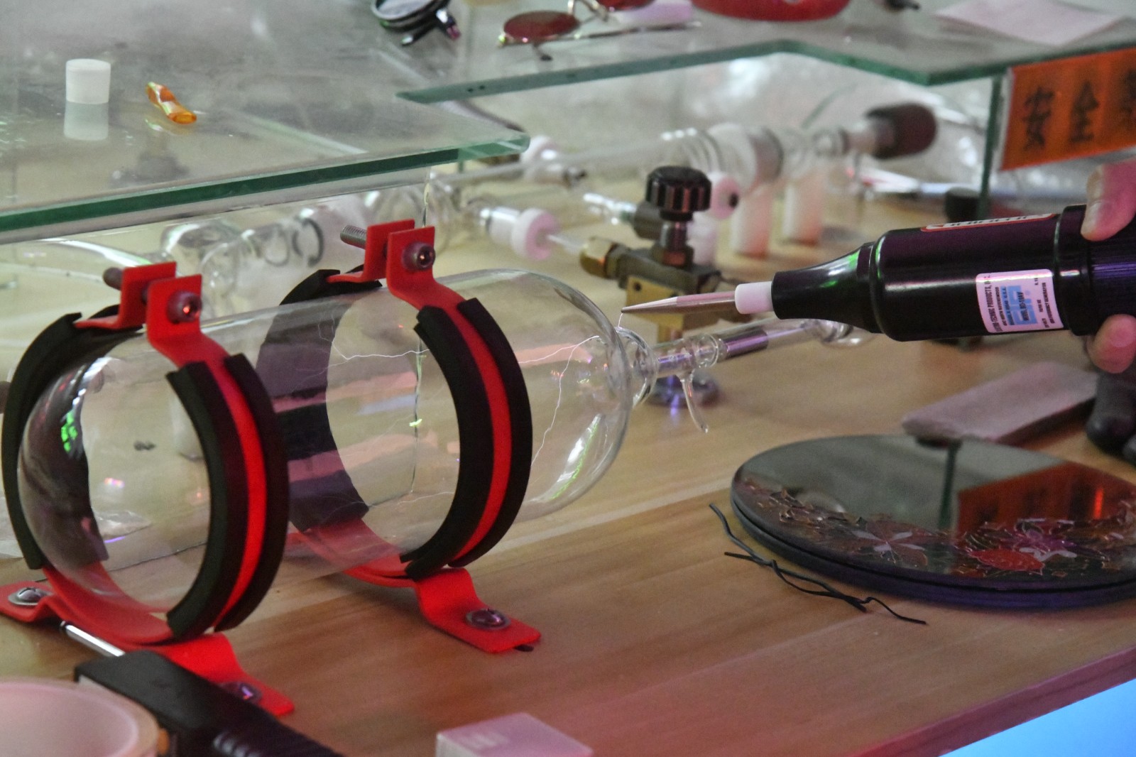 燈管加熱變軟後,可屈曲塑形,同時(shí)向管內(nèi)吹氣有助定形。