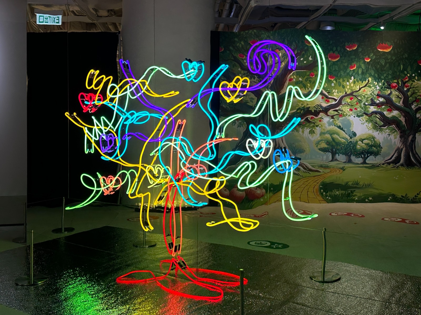 除了客人訂製、餐飲、時(shí)尚品牌與電影行業(yè)外,藝術(shù)團(tuán)體亦成為Jive的客戶。今年他為霓虹燈套上藝術(shù)光環(huán),與香港芭蕾舞團(tuán)及AIRSIDE商場(chǎng)合作,配合芭蕾舞劇《綠野仙蹤.人生歷奇》為商場(chǎng)設(shè)計(jì)兩組沉浸式霓虹燈藝術(shù)裝置。作品依照《綠野仙蹤》的故事情節(jié),在美國(guó)童話中注入香港特色,40支光管組成的霓虹彩虹會(huì)根據(jù)觀眾擺出的姿勢(shì)呈現(xiàn)不同的閃爍效果。Jive表示自己參考了傳統(tǒng)霓虹招牌閃動(dòng)的方式,「昔日香港的海鮮酒家、麻雀舖、娛樂場(chǎng)所的招牌燈光會(huì)不停閃動(dòng),給予我創(chuàng)作靈感。另一組裝置以霓虹燈扭出蘋果樹,當(dāng)觀眾站在樹前舉高手,就能點(diǎn)亮果樹,展現(xiàn)五顏六色的心形果實(shí),以此希望參觀者能發(fā)掘自己的能力與天賦。霓虹燈加入了編程,令其達(dá)到互動(dòng)的效果,展示了霓虹燈的另一面?!乖谌招略庐惖臅r(shí)代,夕陽行業(yè)要轉(zhuǎn)型,加入科技元素是必然的。將霓虹、科技、創(chuàng)意融為一體變成藝術(shù)品,也許是霓虹燈的另一出路。