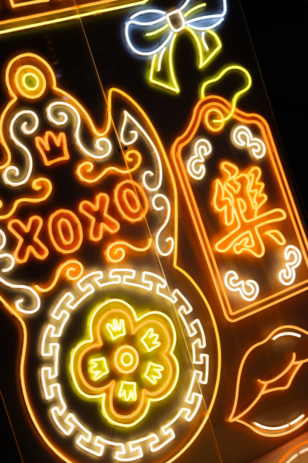 Jive的工作室,收藏各式各樣的霓虹燈飾,有衣架、平底鍋等具有玩味的日用品形狀,亦有他設(shè)計(jì)的中英文字體,格外搶眼的必屬《Lost and Found — Dragon Phoenix》。Jive說:「這件作品的靈感源自昔日本地酒樓辦婚宴時(shí)出現(xiàn)的龍鳳呈祥木雕。龍鳳木雕與霓虹燈一樣,是屬於某一個(gè)時(shí)代的產(chǎn)物,曾經(jīng)風(fēng)光,日漸式微?!棺髌窉?cǎi)用的燈管,分為透明、白色及顏色光管。為燈管注入氖氣,會(huì)呈現(xiàn)當(dāng)舖經(jīng)典的紅色;注入氬氣和水銀,會(huì)變成藍(lán)色。白色及顏色光管通過加入綠、黃,藍(lán)或白色的螢光粉,能幻變出不同色彩,白色光管也能呈現(xiàn)青色、粉藍(lán)色。即使是同一種顏色的兩條光管,若分別注入氖氣與氬氣,也會(huì)呈現(xiàn)不同顏色。