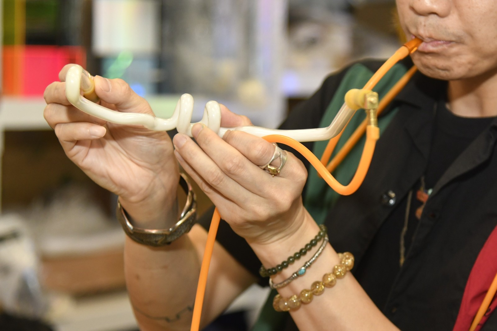 過程中須用上不同溫度的火槍,以便屈曲。