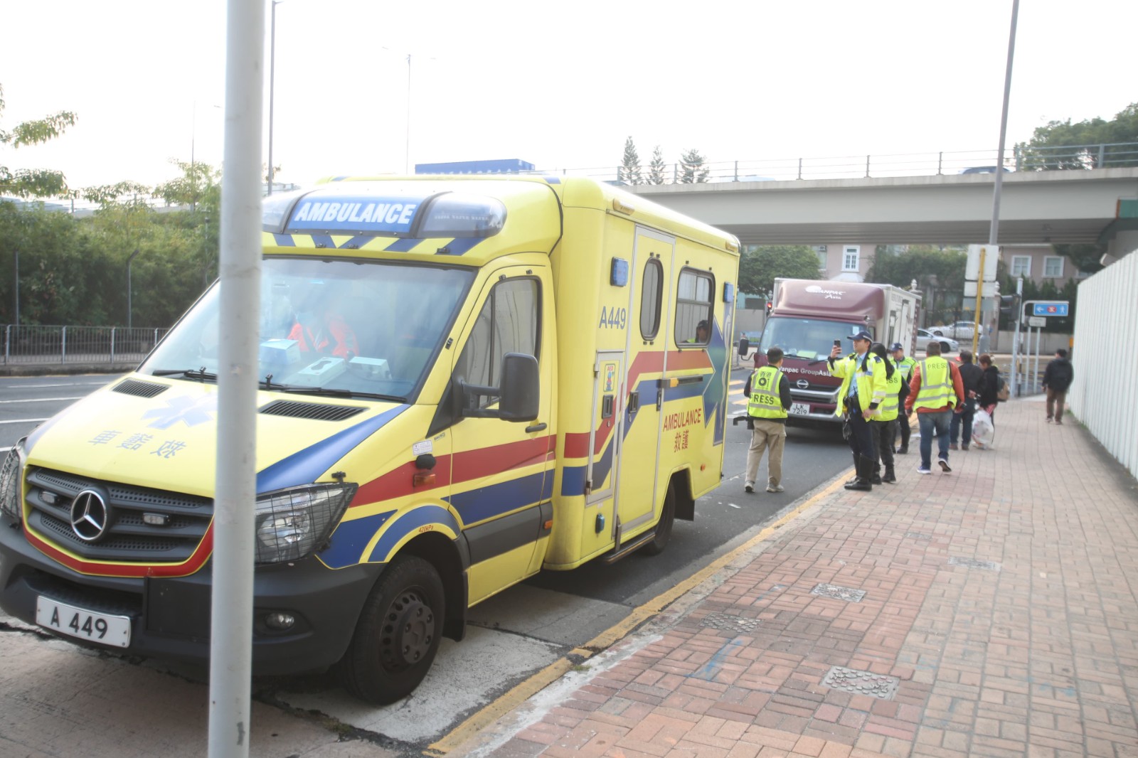 今日(2日)下午3時許,一名貨車跟車工人隨司機乘坐密斗貨車,沿獅子山隧道往九龍方向行駛,當駛至九龍?zhí)粮C打老道時左轉(zhuǎn)入聯(lián)合道,貨車右邊車門疑未有關(guān)好突然打開,跟車工人跌出車外,司機見狀馬上停車並報警,救護員到場替?zhèn)甙欋幔逍阉屯晾巢t(yī)院治理,警方正調(diào)查意外原因。(記者 區(qū)天海)