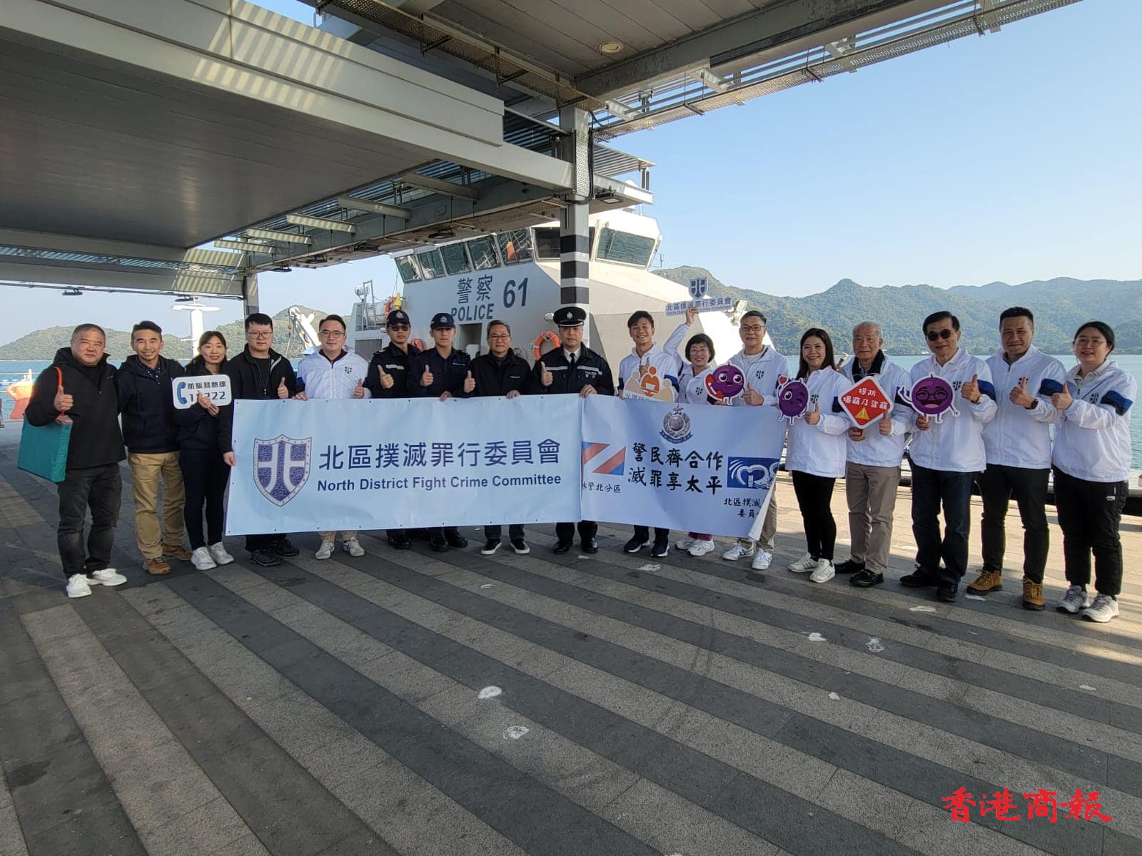 警民關(guān)係組職員及新界北防止罪案辦公室聯(lián)同落馬洲河上鄉(xiāng)村長昨晨(6日)向村民宣傳防爆竊信息。至下午邊界警區(qū)警民關(guān)係組人員聯(lián)同水警北分區(qū)指揮官李嘉偉署理警司、水警北分區(qū)人員、北區(qū)民政事務(wù)處助理專員陳傳賢、沙頭角區(qū)鄉(xiāng)事委員會(huì)主席李冠洪,MH、北區(qū)撲滅罪行委員會(huì)委員楊田田、莫慕潔、歐振成,MH、賴心、李國耀、李嘉駿及吉澳村代表,透過跨部門多機(jī)構(gòu)合作攜手滅罪,在吉澳進(jìn)行冬防滅罪宣傳活動(dòng),提醒村民慎防罪案發(fā)生 。