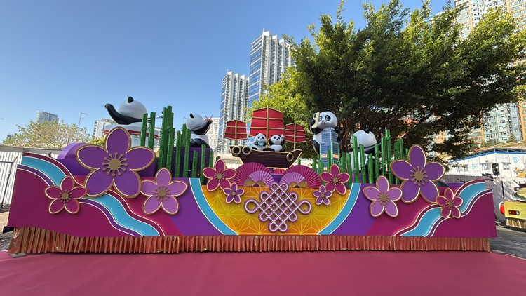 「熊貓暢遊香港號(hào)」是大熊貓家族誠(chéng)邀世界好友跟隨它們足跡一同暢遊香港,花車加入很多香港特色元素,讓6隻大熊貓可以不同造型與各位見面。「盈盈」在車頭拿著揮春跟大家拜年,「樂樂」在車尾和港式奶茶杯一起登場(chǎng),「安安」就爬上高樓大廈自拍打卡,充滿活力的「可可」就與各位一起迎接新年。很受歡迎的大熊貓BB「家姐」和「細(xì)佬」就坐著在一輛可360度旋轉(zhuǎn)帆船上吃雪糕暢遊香港,希望大家都能一起召集世界好友跟隨大熊貓的足跡暢遊香港。