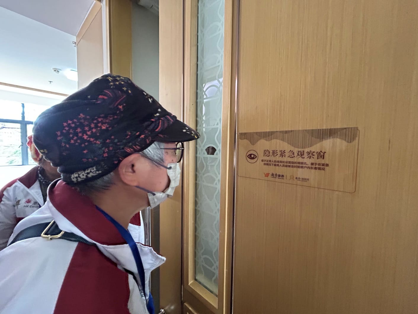 「香港第三齡學(xué)苑」大使對國內(nèi)院舍的適老化設(shè)施和樂齡科技應(yīng)用感到好奇,興致勃勃地 試用喚人鈴、體位監(jiān)測墊、生物驗(yàn)證通行系統(tǒng)和緊急視察窗等樂齡科技與適老化產(chǎn)品。