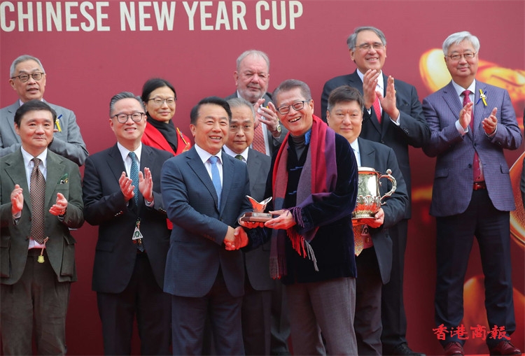 今日(31日)沙田馬場(chǎng)舉行《農(nóng)曆新年賽馬日》(賀歲馬),全日焦點(diǎn)賽事之一第六場(chǎng)二班1400米賀年盃,練馬師姚本輝成為焦點(diǎn)人物,旗下的「堅(jiān)又威」、「一先生」分奪冠亞軍,捧盃之餘,還包辦馬房連贏位,財(cái)政司司長(zhǎng)陳茂波(財(cái)爺)賽後出席頒獎(jiǎng)儀式,將賀年盃獎(jiǎng)盃及元寶予「堅(jiān)又威」的馬主堅(jiān)又威賽馬團(tuán)隊(duì)代表,以及頒發(fā)元寶予姚本輝及騎師布文。