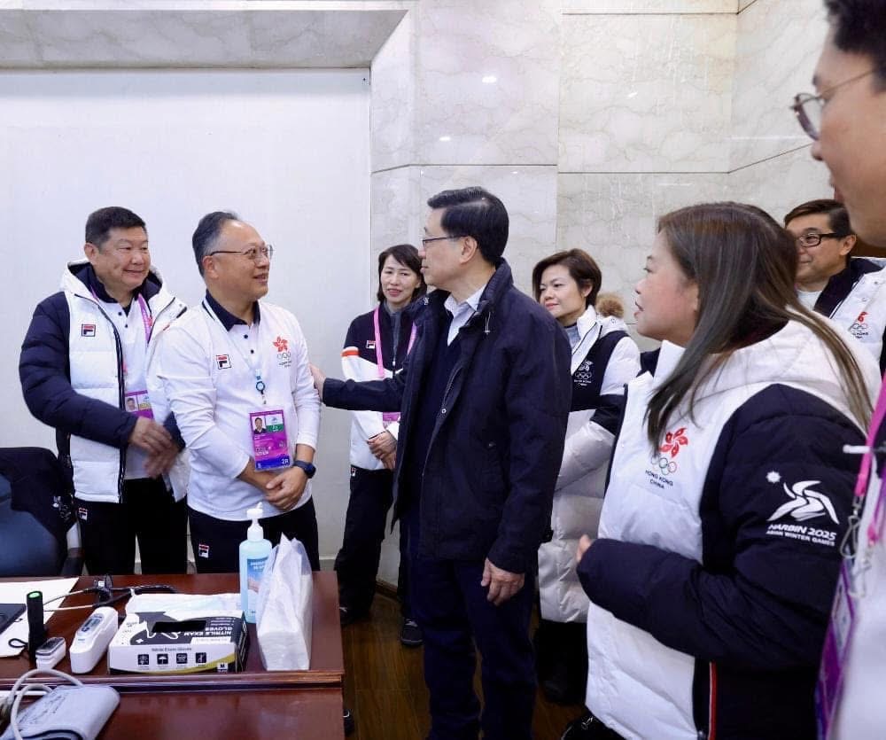今日(8日)是哈爾濱亞冬會(huì)開(kāi)幕後的首個(gè)比賽日,行政長(zhǎng)官李家超早上前往冰上項(xiàng)目運(yùn)動(dòng)員村與港隊(duì)運(yùn)動(dòng)員、領(lǐng)隊(duì)、教練、醫(yī)療隊(duì)伍代表會(huì)面交流。他今午於社交平臺(tái)發(fā)文表示,港隊(duì)派出了破紀(jì)錄的逾70名運(yùn)動(dòng)員參賽,很開(kāi)心看到運(yùn)動(dòng)員身心狀態(tài)都很好。並鼓勵(lì)他們放鬆心情、發(fā)揮最佳水平。