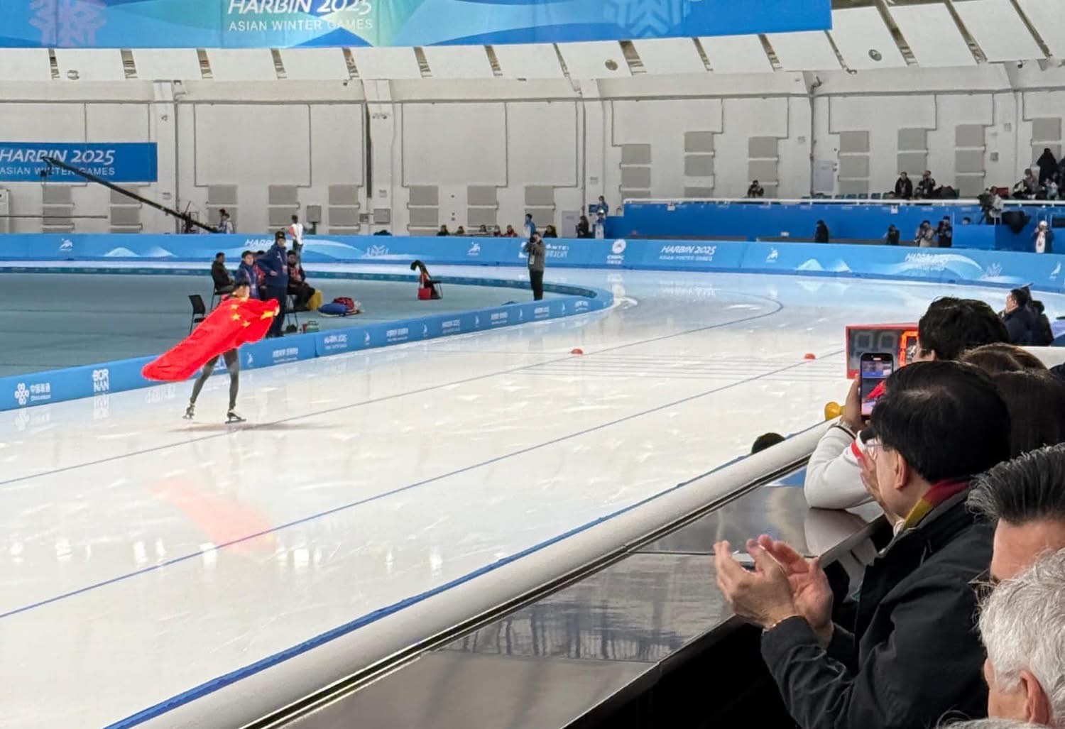 其後李家超分別到黑龍江省冰上訓(xùn)練中心綜合館和速滑館觀看短道速滑和速度滑冰賽事,為國(guó)家隊(duì)和香港隊(duì)的運(yùn)動(dòng)員打氣。他說(shuō):「比賽十分激烈精彩,國(guó)家隊(duì)和香港隊(duì)的運(yùn)動(dòng)員展現(xiàn)出色的速度與技巧。我們更現(xiàn)場(chǎng)見(jiàn)證了國(guó)家隊(duì)選手高亭宇在速度滑冰男子100米決賽以9.35的成績(jī)奪得金牌,這一成績(jī)刷新了亞洲紀(jì)錄,我們都十分自豪?!?/p>