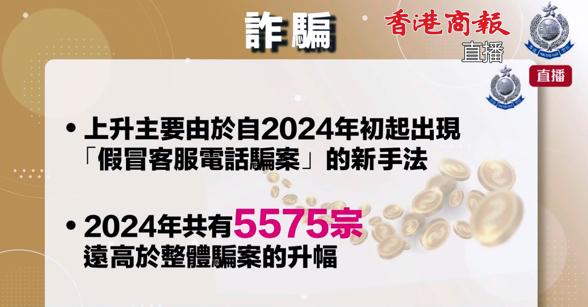 就過去幾年騙案的趨勢而言,相對於2022及2023年連續(xù)上升超過四成,2024年約一成二的升幅,已明顯收窄,而涉及金額(91.5億元)亦跌3000萬元,可見警方的各類防騙工作,以及與持份者於過去三年推出的多項(xiàng)防騙措施初見成效。