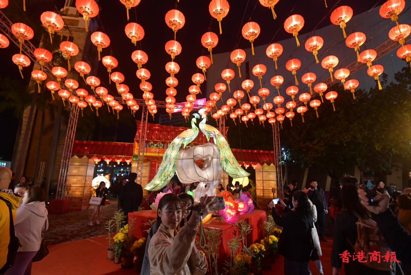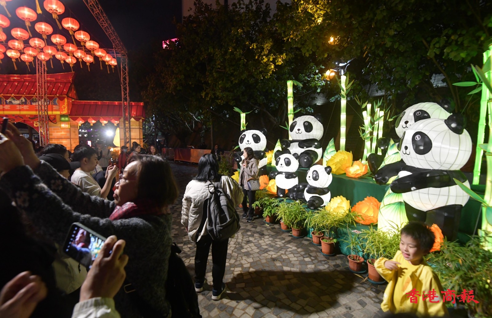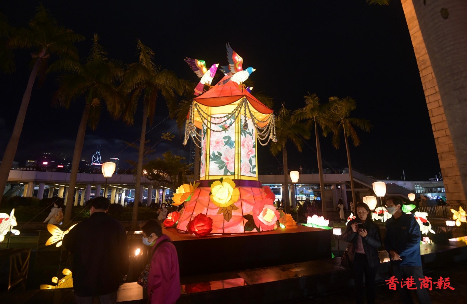 露天廣場上同時展出了多組璀璨綵燈,增添節(jié)慶的氣氛,包括熊貓、孔雀、狐獴和松鼠造型綵燈;其中一個亮點是6米高大型宮燈,綴以牡丹和喜鵲,宮燈四圍亦擺設了天燈、鯉魚和荷花造型的綵燈,以及由本地紮作師傅冒卓祺以傳統(tǒng)年畫為靈感而製作的《燈魚躍動·歲歲豐盈》花燈,吸引大批市民和旅客前來「打卡」。(記者:李銘欣 攝影:崔俊良)