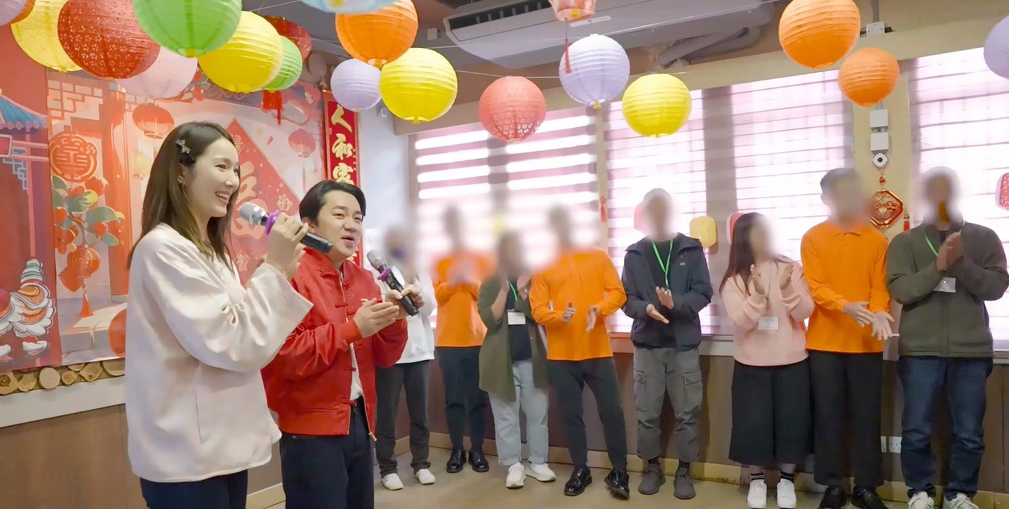 藝人王祖藍(lán)與太太李亞男到壁屋懲教所探望在囚青少年,並與他們的家人一起玩遊戲及製作應(yīng)節(jié)食品,度過一個(gè)甜甜蜜蜜的元宵節(jié)。(懲教署片段截圖)