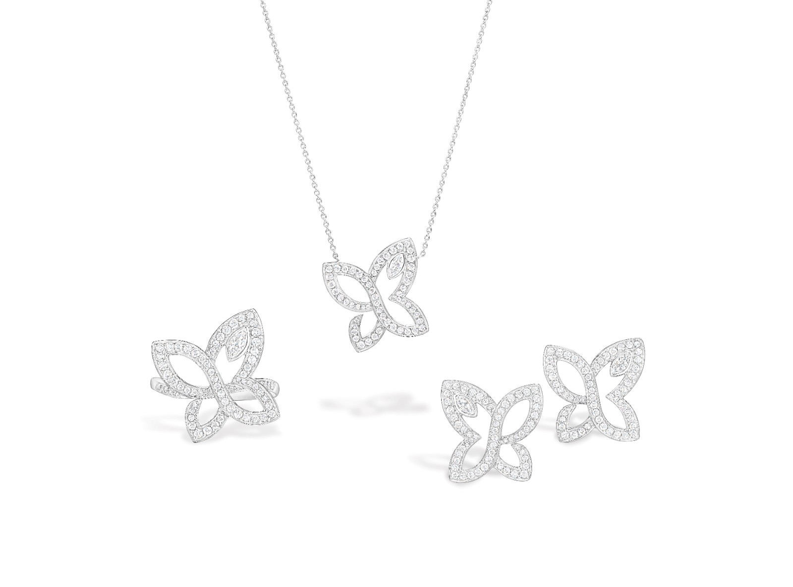 Lily Cluster 系列自 2010 年推出以來,以百合花瓣的綻放姿態(tài)為靈感,展現(xiàn)柔和曲線與立體層次。新作 Infinite Lily Cluster,延續(xù)品牌的設(shè)計理念,在經(jīng)典設(shè)計基礎(chǔ)上注入動態(tài)感,以流暢線條捕捉蝴蝶展翅瞬間,呈現(xiàn)輕盈且富有生命力的視覺效果。不僅展現(xiàn)珠寶工藝的細(xì)膩質(zhì)感,也透過自然元素的演繹,傳遞多變自由的美感。