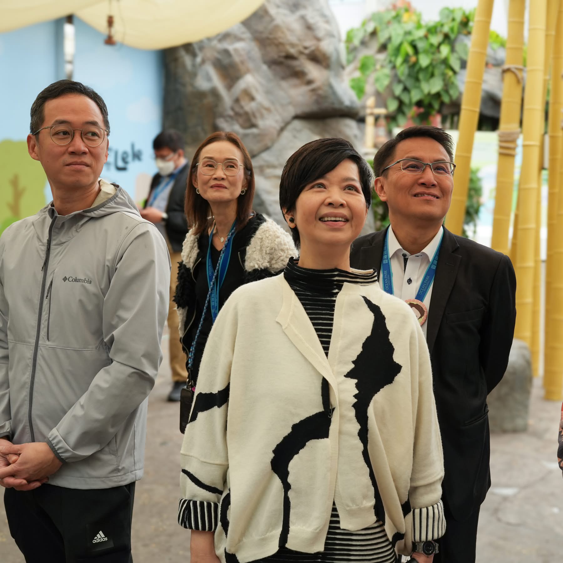 港產(chǎn)大熊貓龍鳳胎成為香港的寵兒,城中掀起一股熊貓熱,連政商名人都爭先恐後地跑海洋公園去「擼熊貓」。房屋局局長何永賢就化身小粉絲,和熊貓BB合照。