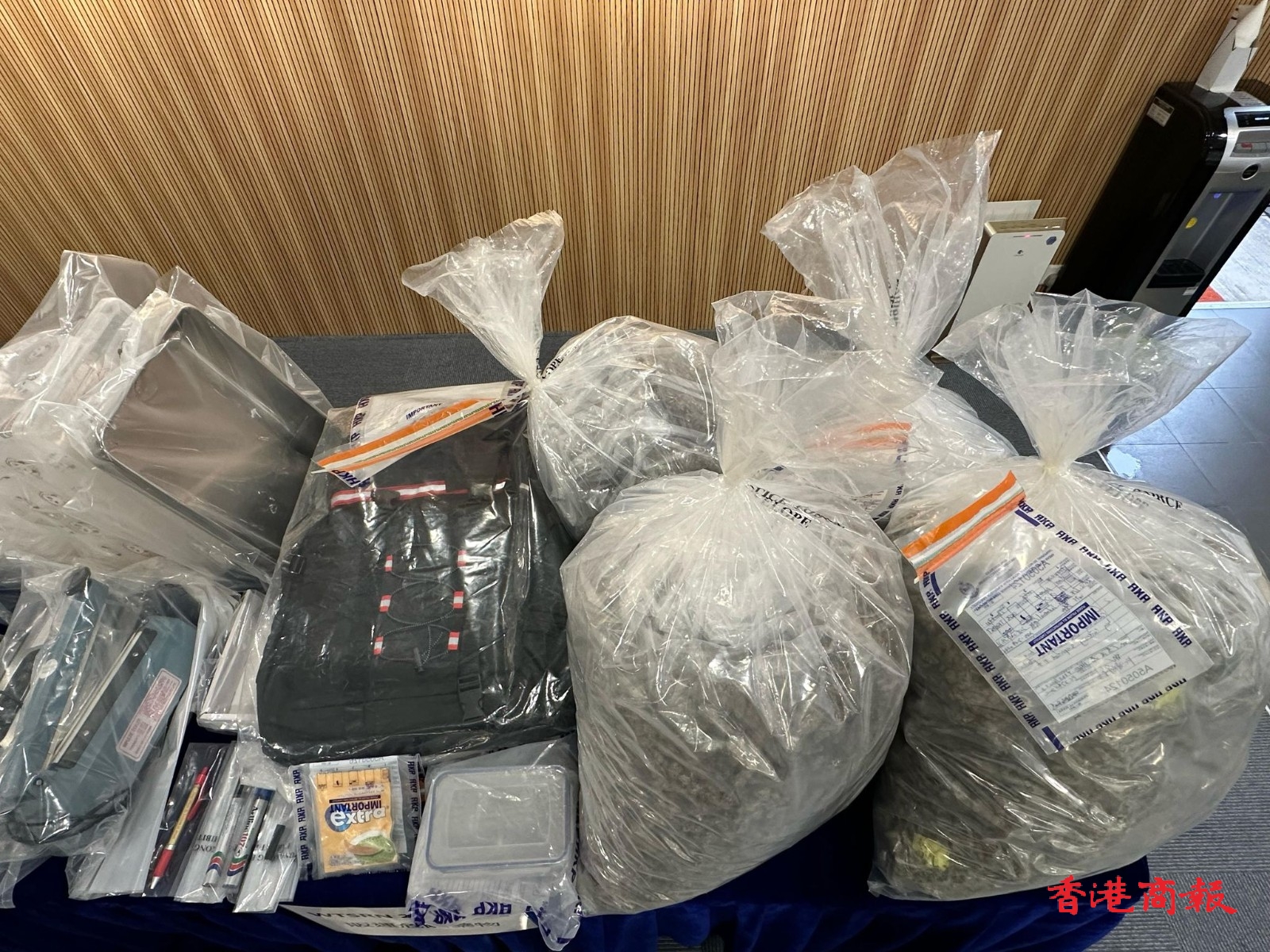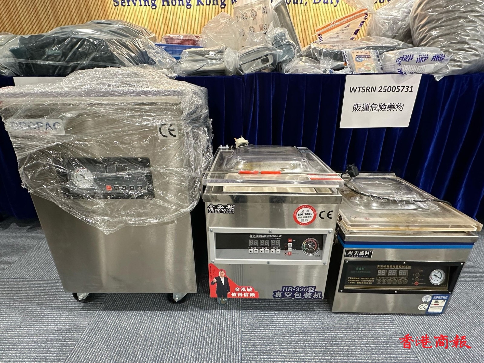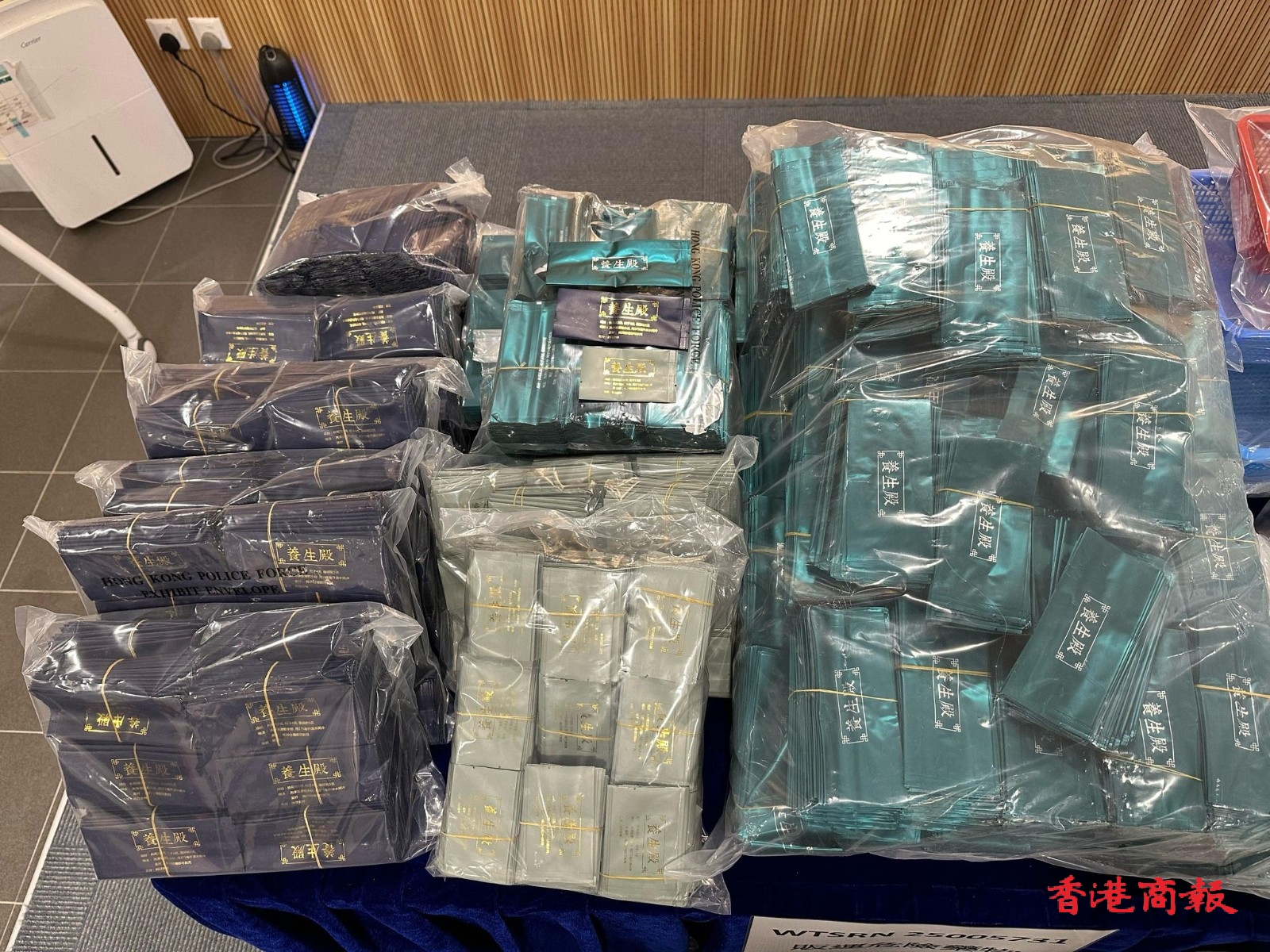 初步調(diào)查得知,疑犯受販毒集團(tuán)招攬租用工廈單位,接收和包裝毒品,檢獲的包裝袋上印有養(yǎng)生食品的文字,相信毒販利用食物包裝掩飾,逃避警方追查。