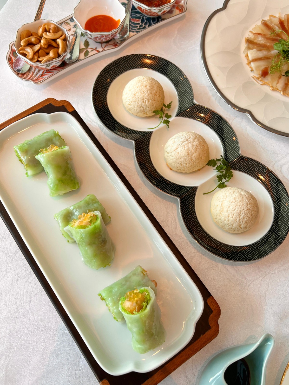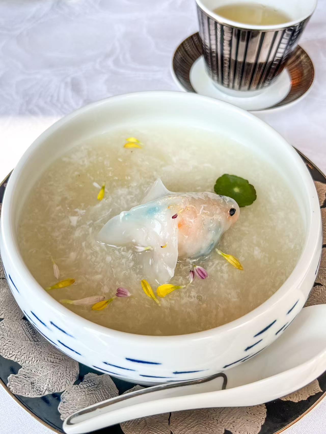 餐廳提供多款特色點(diǎn)心,包括賣相精美的龍蝦燕窩金魚餃(HK $168/位),採用珍貴食材,保留了傳統(tǒng)口味;香脆可口的鱈魚窩夫春卷(HK $20/件,兩件起),搭配芥末沙律醬,惹味倍添;口感豐富的春風(fēng)得意水網(wǎng)腸(HK $88)包裹新鮮的三文魚籽與鮮蝦;滋味十足的生煎和牛包(HK $25/件,兩件起)外層煎至金黃微焦,內(nèi)裏和牛肉質(zhì)豐腴;散發(fā)濃郁香氣的松露羊肚菌餃(HK $18/件,兩件起),羊肚菌十分爽口,口感層次豐富。即日起至2月28日,可享午市粵式點(diǎn)心半價優(yōu)惠。
