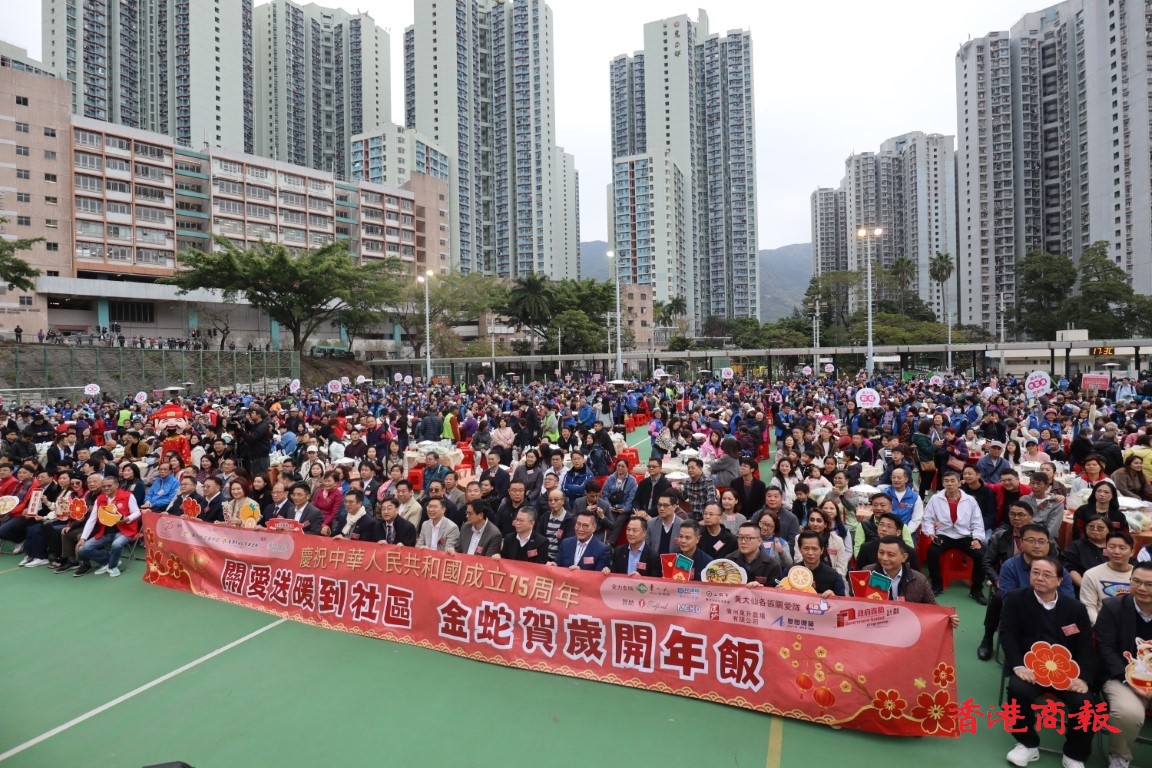 為慶中華人民共和國成立75周年及弘揚關愛社區(qū)精神,由黃大仙民政事務處聯(lián)同香港黃埔各界聯(lián)合會主辦、九龍社團聯(lián)會黃大仙地區(qū)委員會協(xié)辦的「關愛送暖到社區(qū)金蛇賀歲開年飯」,在東九龍居民委員會、民建聯(lián)黃大仙支部、工聯(lián)會黃大仙地區(qū)服務處、黃大仙各區(qū)關愛隊,及匯泉國際有限公司、MEKO、道地、廣州東升農(nóng)場有限公司及奧圖彈簧等愛心企業(yè)的全力支持下,今日(22日)假慈雲(yún)山中央遊樂場舉行,筵開逾310席盆菜,招待了約2900位黃大仙區(qū)內(nèi)獨居長者、雙老家庭及綜緩長者戶,為區(qū)內(nèi)長者送上溫暖與關懷。