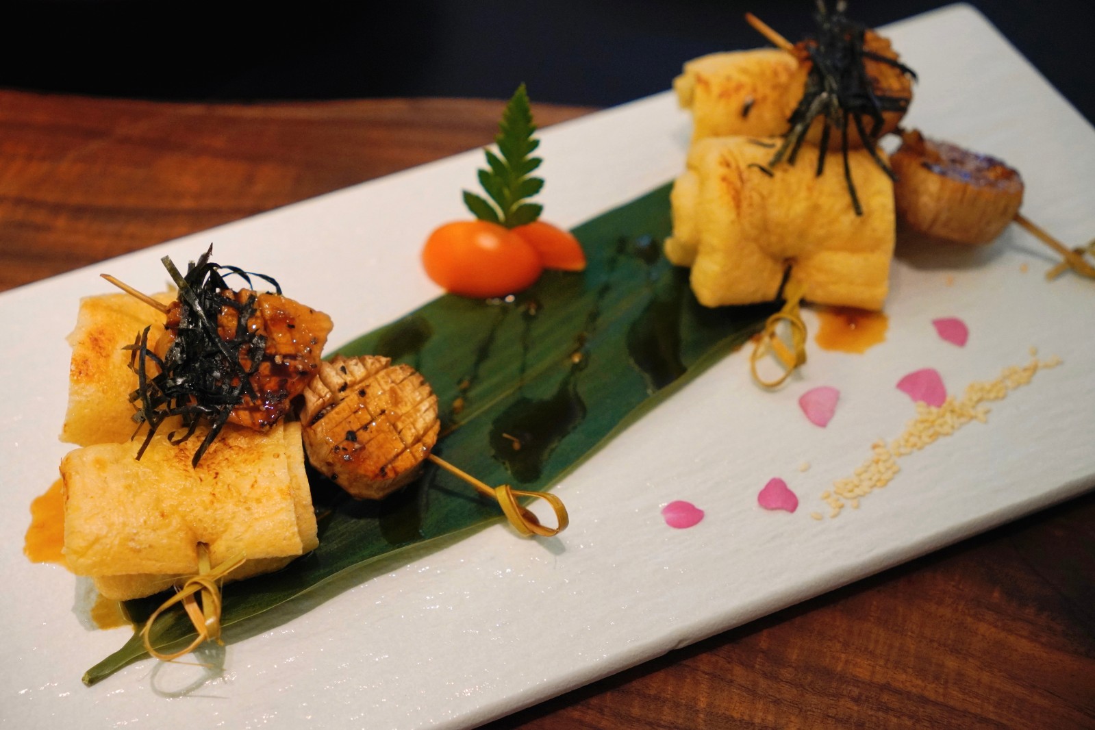 串燒櫻桃茄拼日式照燒素帶子。