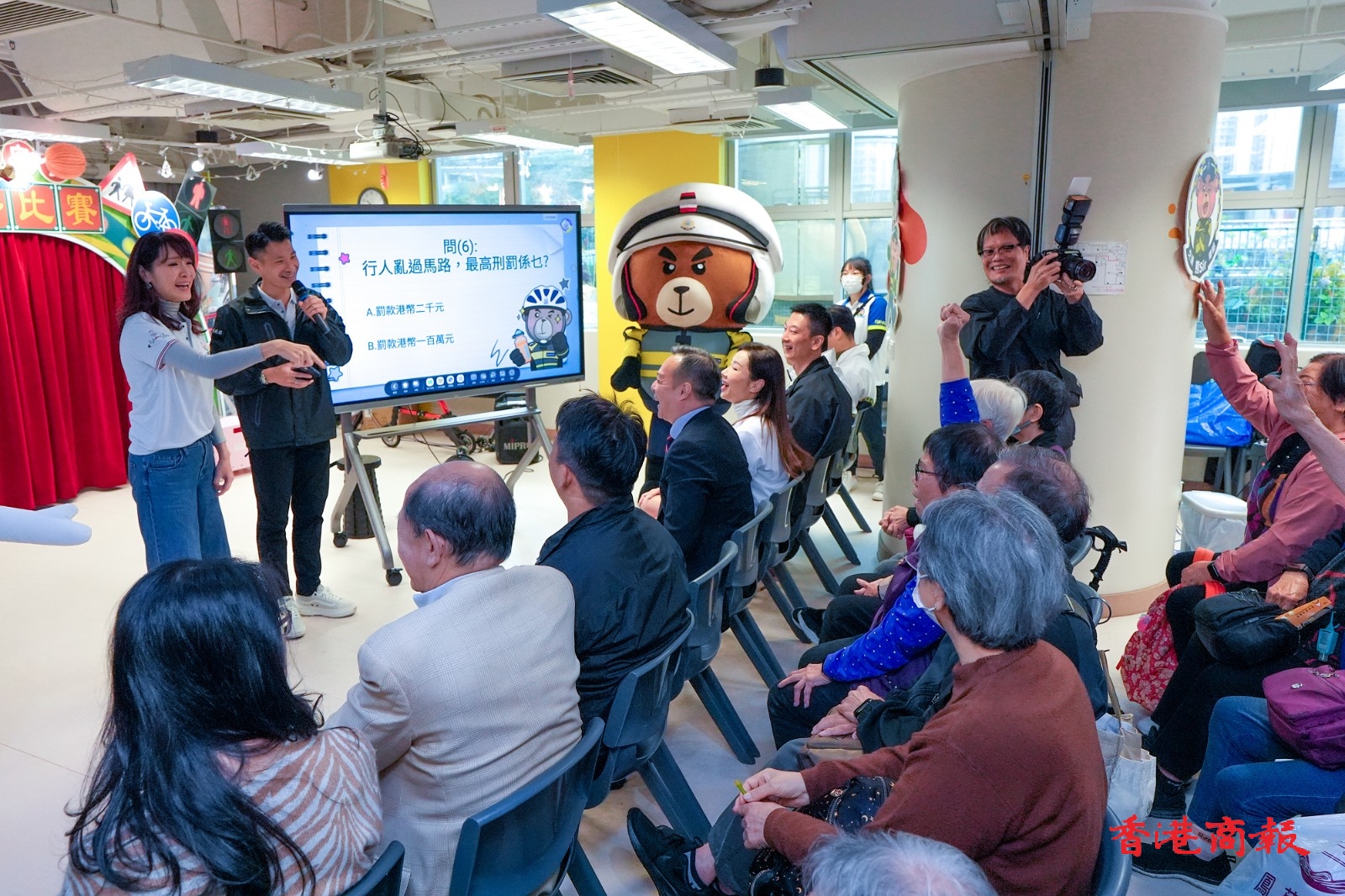 探訪期間,周一鳴更與老友記們進(jìn)行互動(dòng),考驗(yàn)各位長者道路安全方面的知識(shí),並與兩位大使將道路安全福袋派發(fā)給一眾老友記,為長者送上關(guān)懷及祝福。活動(dòng)吸引約80名長者參與,交通總部及道路安全議會(huì)吉祥物「熊Sir」 及「留心蛋」也廣受歡迎,長者紛紛與其合照留念。