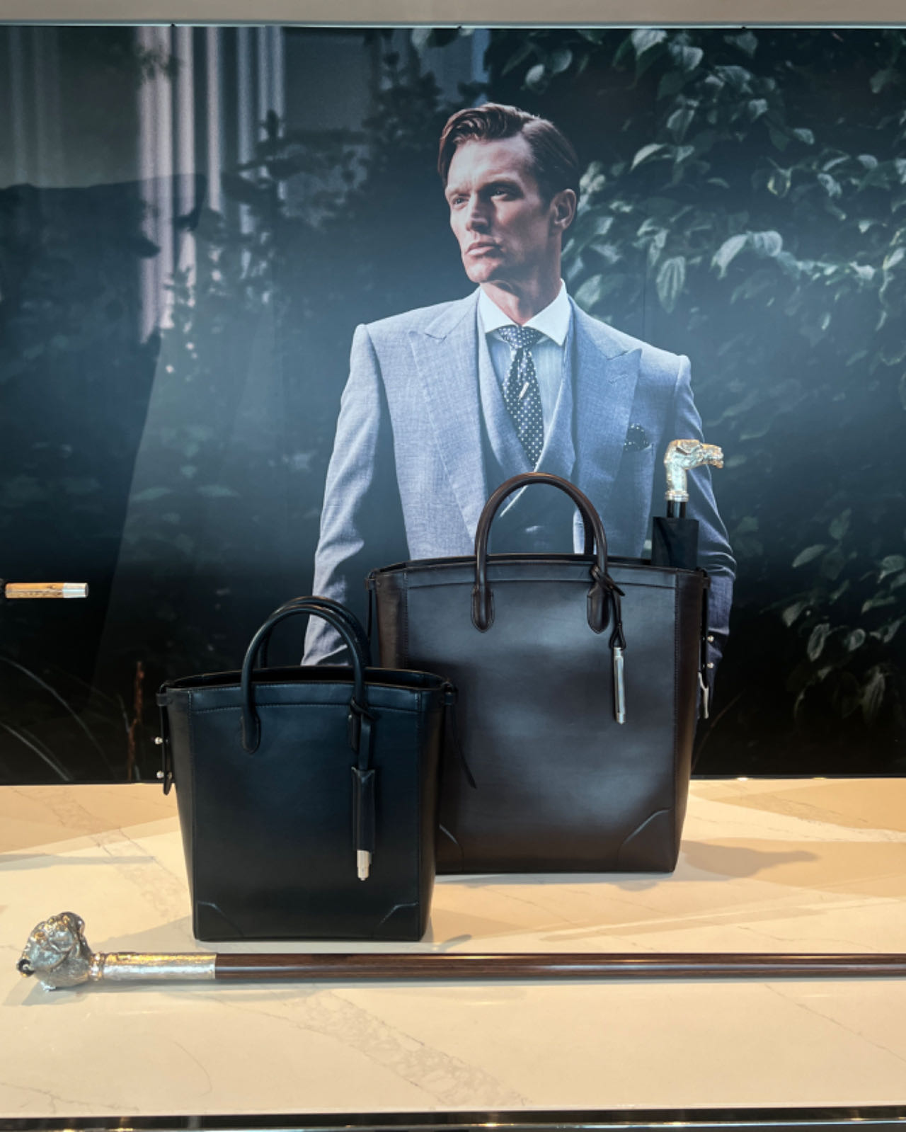 配件從汽車皮具的館藏系列中汲取靈感,Century皮具系列變化多樣,款式精雕細琢,採用高品質及深度鞣製的小牛皮,在歲月的洗禮下,可形成獨特的光澤,加上匠人打造的金屬部件,精緻考究。匠心打造的雨傘,用上了品牌標誌性的錫鑞製狗頭手把,配合系列的汽車手套等,為穿著風格增添層次。 (記者、部分圖片:Janice)