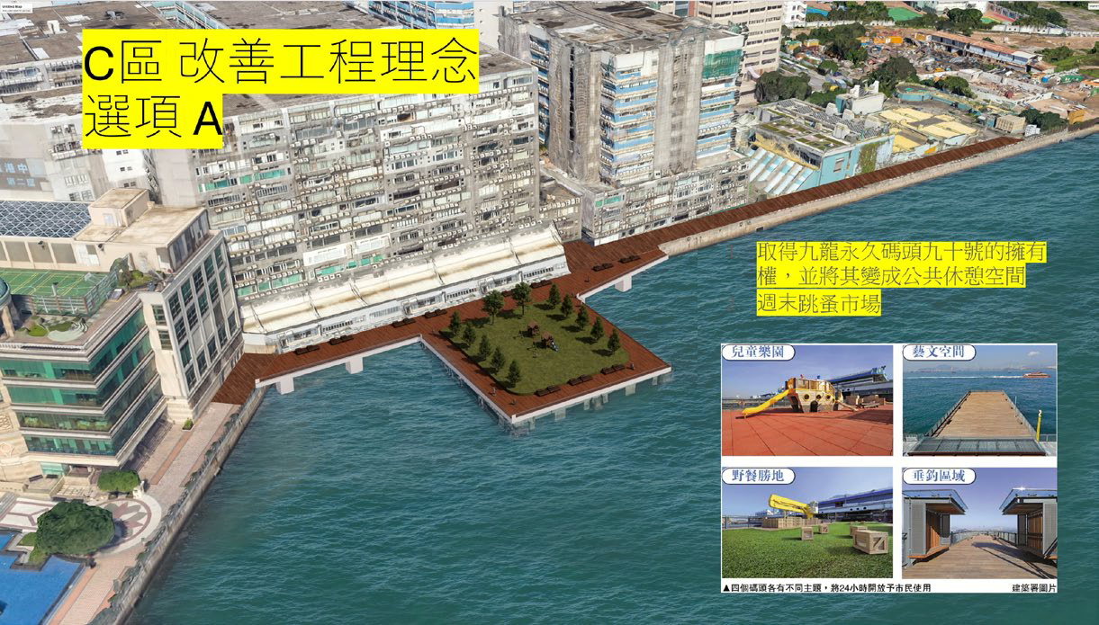 民建聯(lián)九龍城團(tuán)隊(duì)建議將九龍城區(qū)整條海濱連貫接通,以紅磡黃埔海濱為起點(diǎn),中間連貫土瓜灣及啟德;優(yōu)化市建局小區(qū)發(fā)展項(xiàng)目明倫街/馬頭角道發(fā)展計(jì)劃劃(KC-018)和土瓜灣道/馬頭角道發(fā)展計(jì)劃(KC-019);改善現(xiàn)時(shí)海心公園之間的行人連接與周邊環(huán)境,最終目標(biāo)是貫通黃埔、土瓜灣、啟德海濱長(zhǎng)廊,與尖沙咀海濱長(zhǎng)廊和觀塘海濱長(zhǎng)廊連成一線,成為本港特色地標(biāo)。