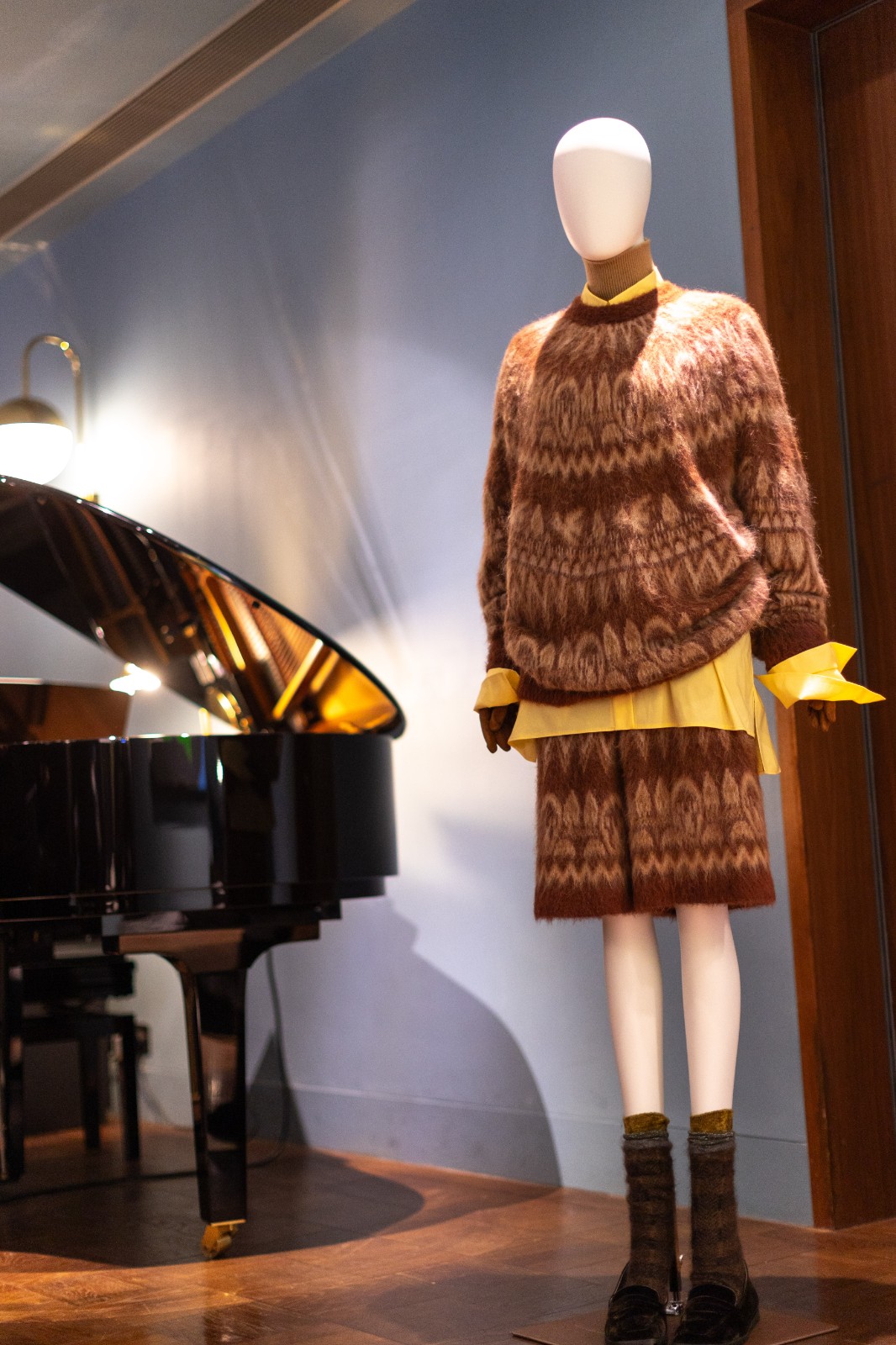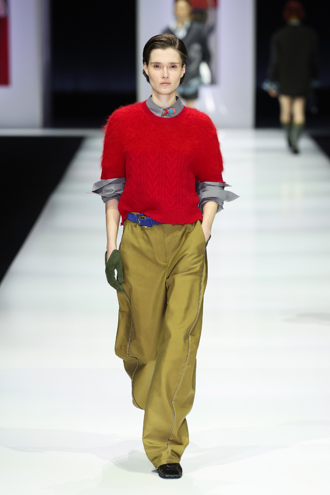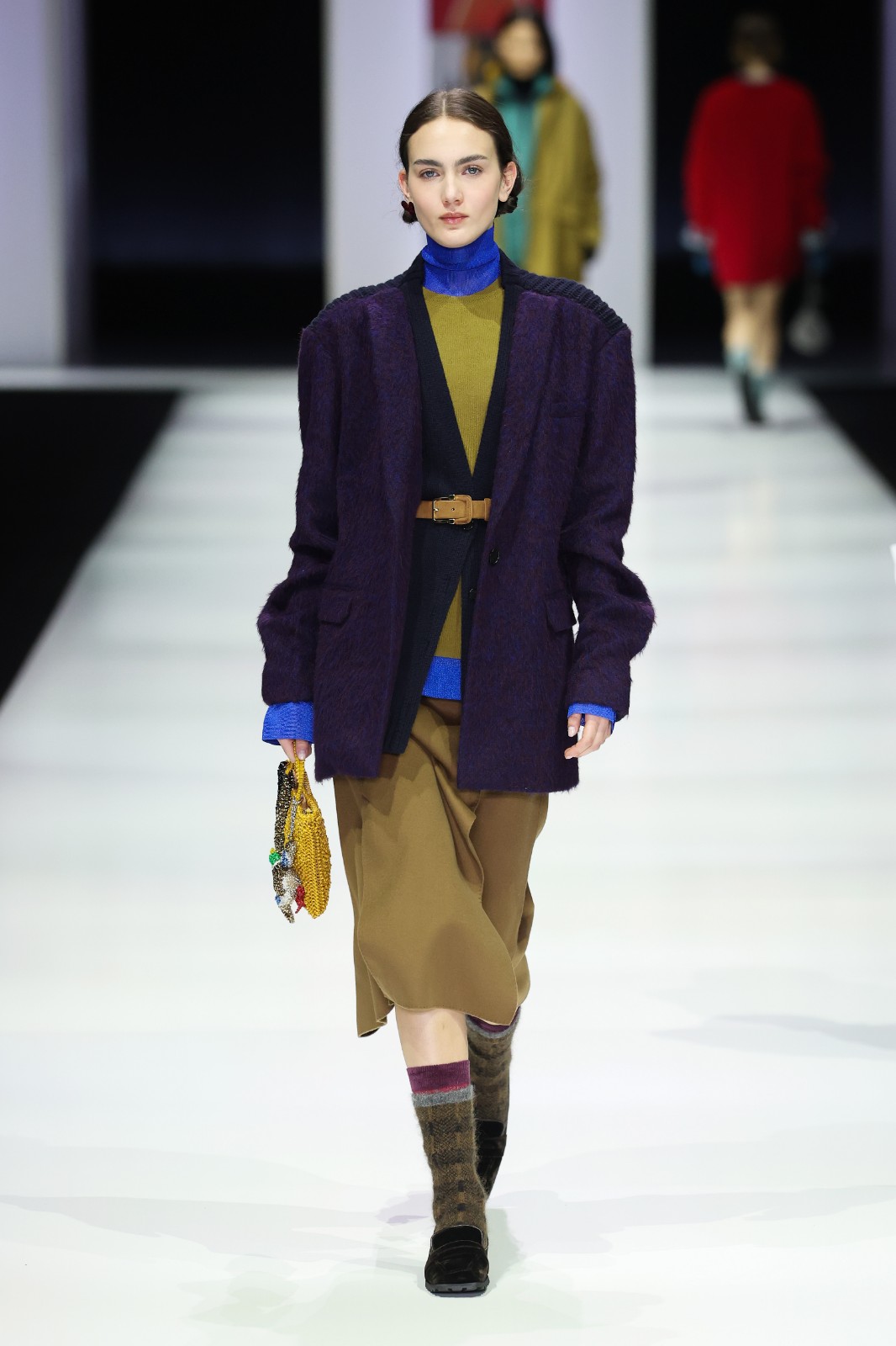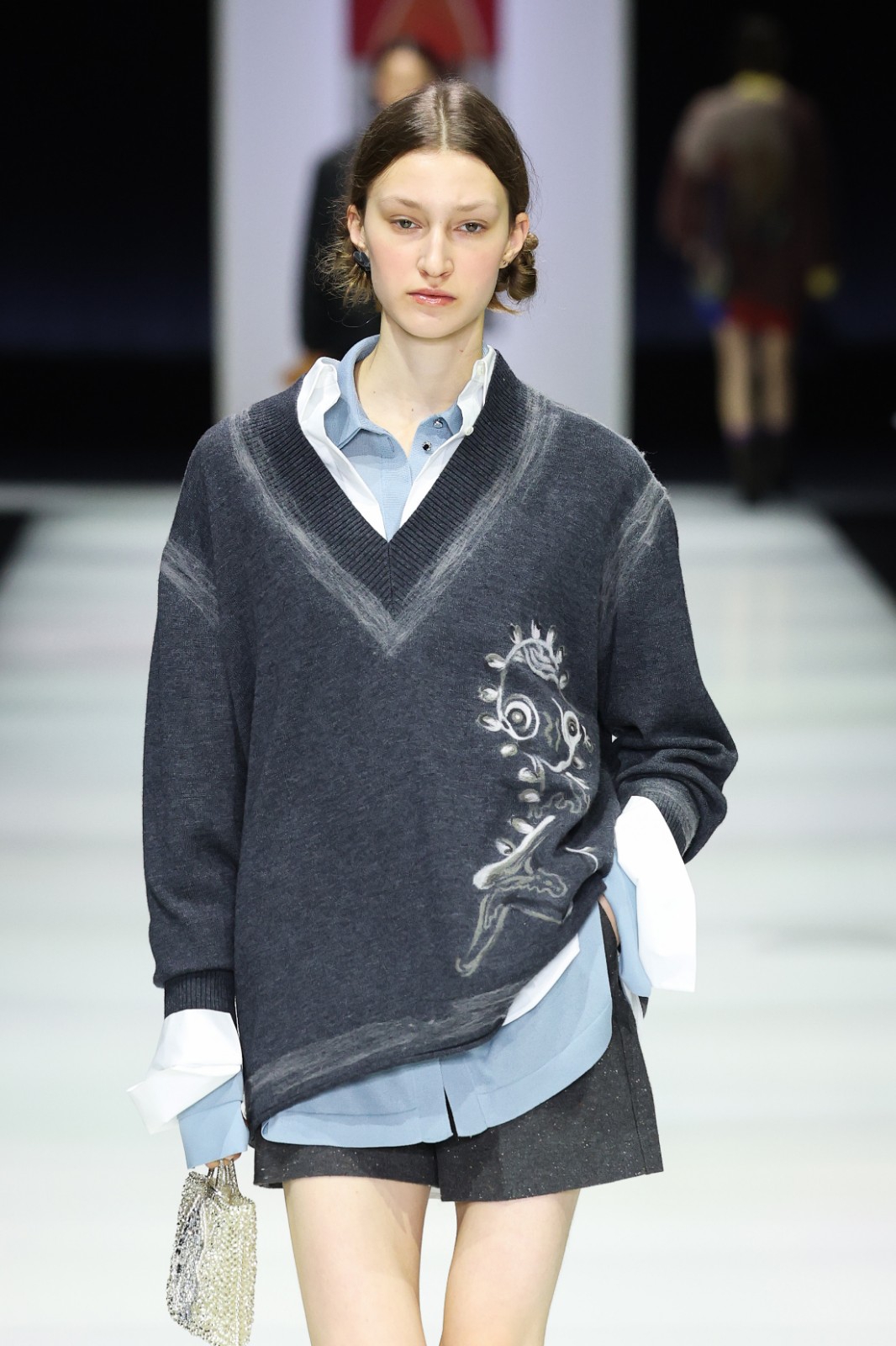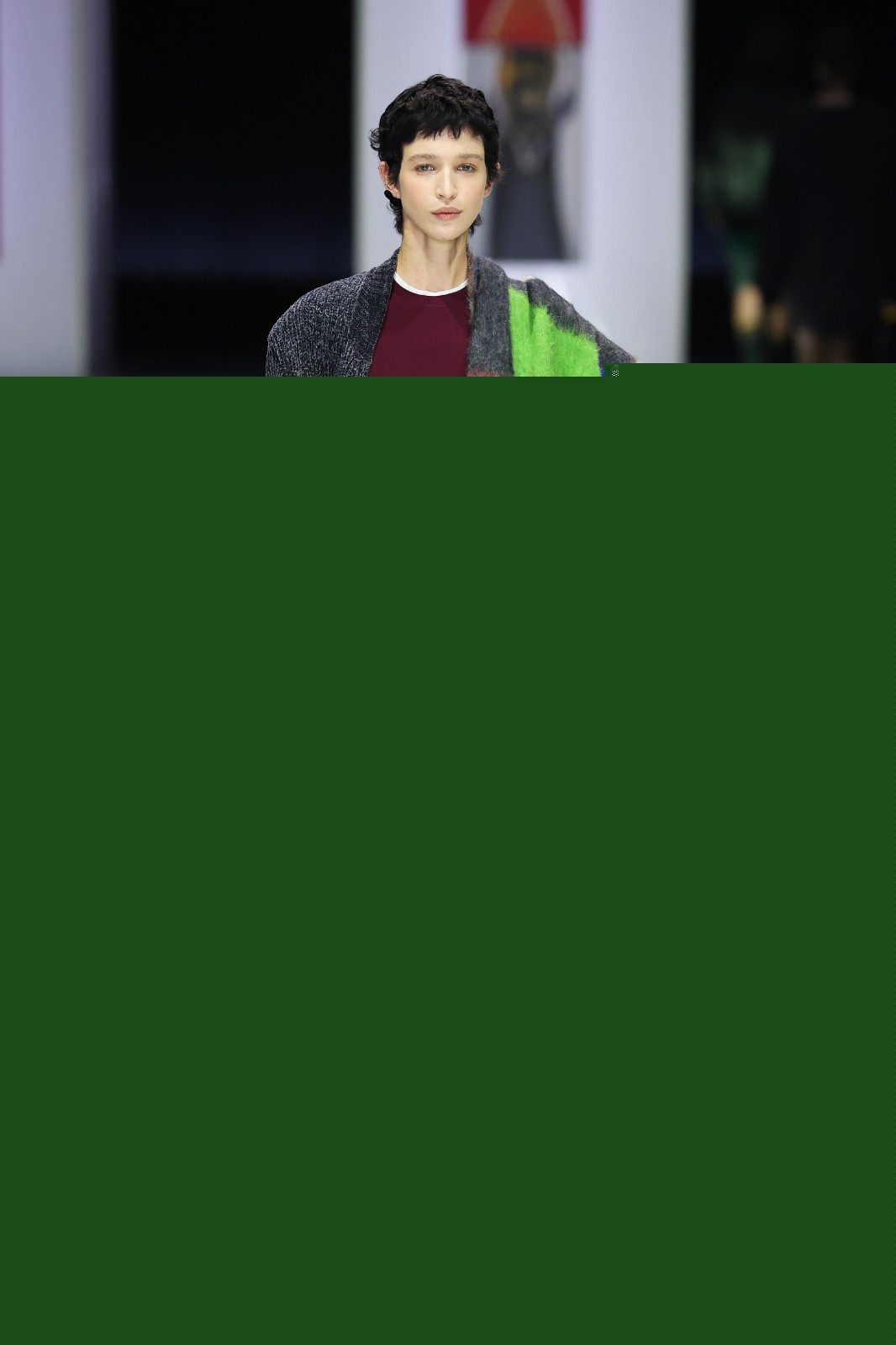 系列把過去與未來交織,服裝上耐人尋味的部落圖騰、不同形狀和未來感的神祕人形生物和動(dòng)物,深邃的大地色結(jié)合鮮艷跳脫色調(diào)等,呈現(xiàn)出古老與未來、原始與精緻兼?zhèn)涞摹甘澜纭埂2剂匣腥绠嫴?,以人手工藝從質(zhì)感、用色、情感上細(xì)緻演繹。品牌擅於精湛針織工藝及高端面料製作,這次利用羊絨、羊毛絲綢混紡、Alpaca羊毛等材質(zhì),將柔軟輕盈的針織,以不對稱剪裁、oversize輪廓打造出趣味、舒適且不分年齡和性別的服飾,運(yùn)用特殊織法和技術(shù)造出刻意破損的下擺和外露縫線,保留原始和手工打造質(zhì)感,充滿了細(xì)節(jié)感。