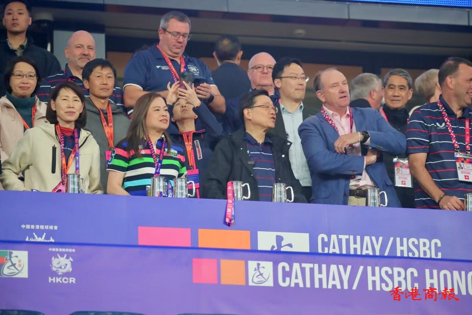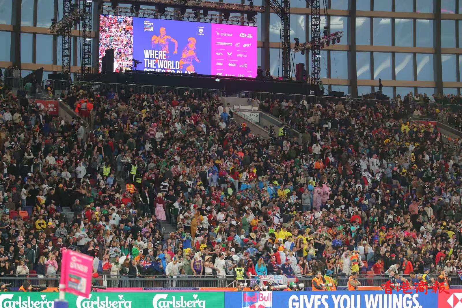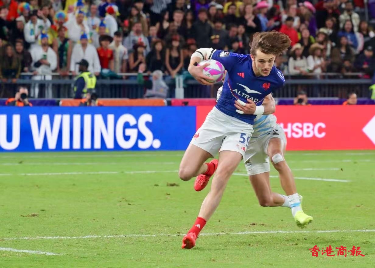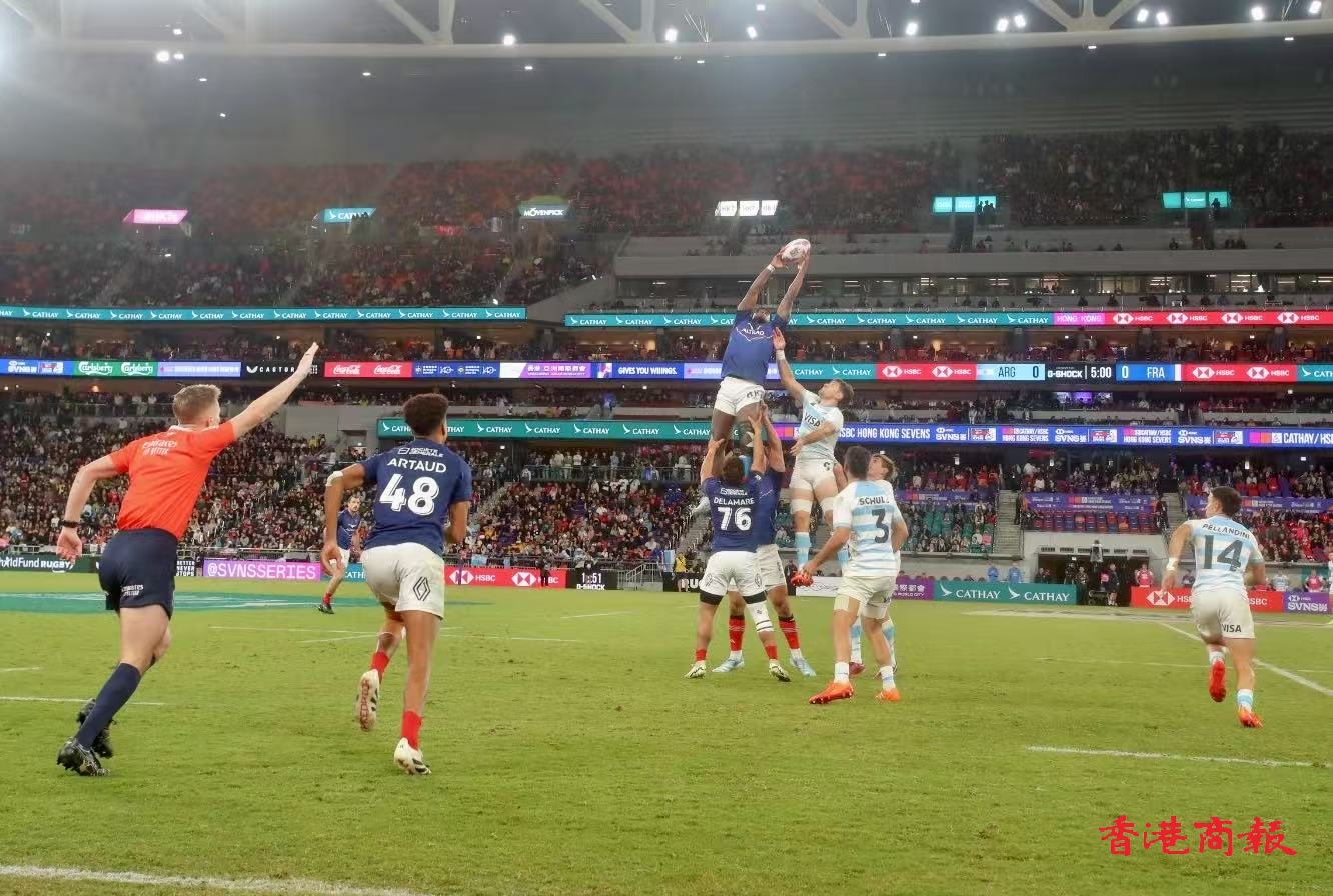 啟德主場館舉行「國泰/滙豐香港國際七人欖球賽」(香港七欖)今日(30日)上演最後一日賽事,全日入場人數(shù)達(dá)到38352,場面非常熱鬧。晚上進(jìn)行的壓軸戲男子組決賽,由系列賽排榜首的阿根廷出戰(zhàn)法國,兩軍上半場互無紀(jì)錄,進(jìn)入下半場,法國有迪拉馬粗野欄截領(lǐng)黃牌須離場2分鐘,阿根廷把握多打一人的優(yōu)勢,憑著艾華利斯、蒙尼達(dá)達(dá)陣得分,取得12比0優(yōu)勢,法國完場前由阿費爾破蛋,最終阿根廷贏12比7完場,在香港站奪標(biāo)。行政長官李家超賽後出席頒獎儀式。(文、圖、片:志誠)