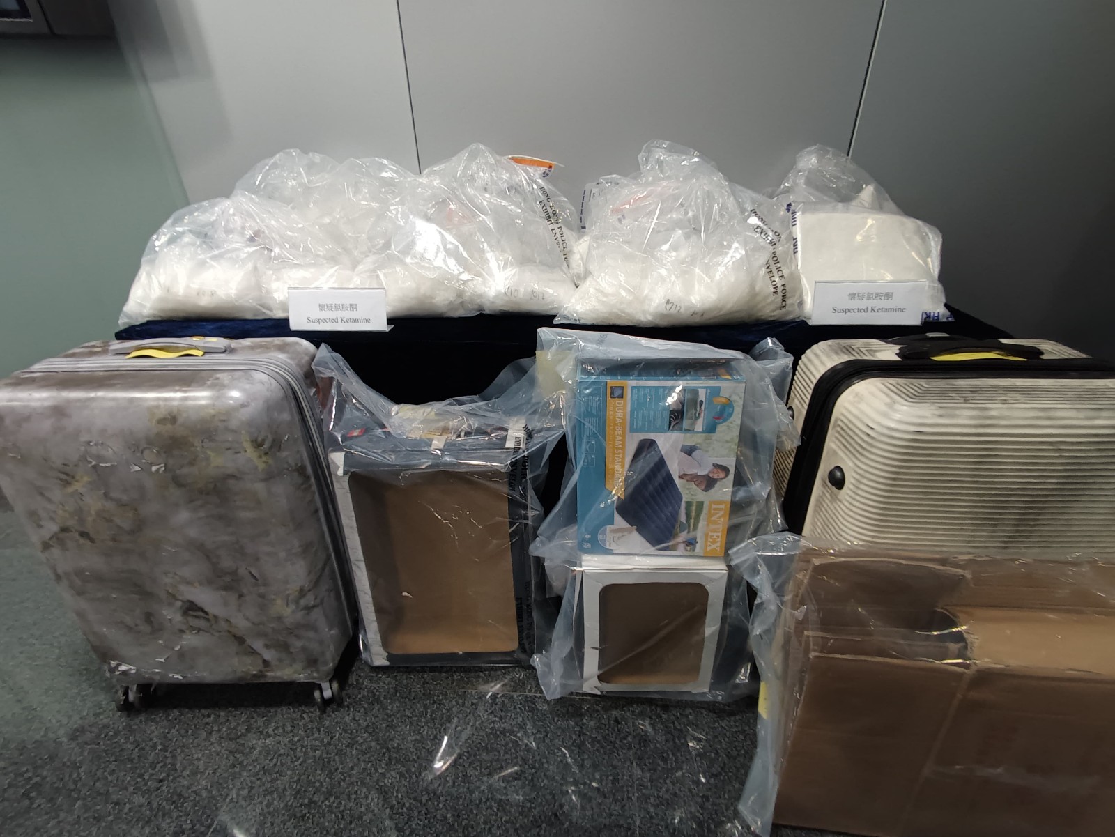 警方昨日(30日)在機(jī)場展開反毒品行動,拘捕一對從瑞士抵港情侶,檢獲約50公斤懷疑氯胺酮,市值逾2470萬元。警方相信疑犯被販毒集團(tuán)以微薄報酬利誘,作「飛機(jī)豬」免費旅遊替毒販運(yùn)毒。