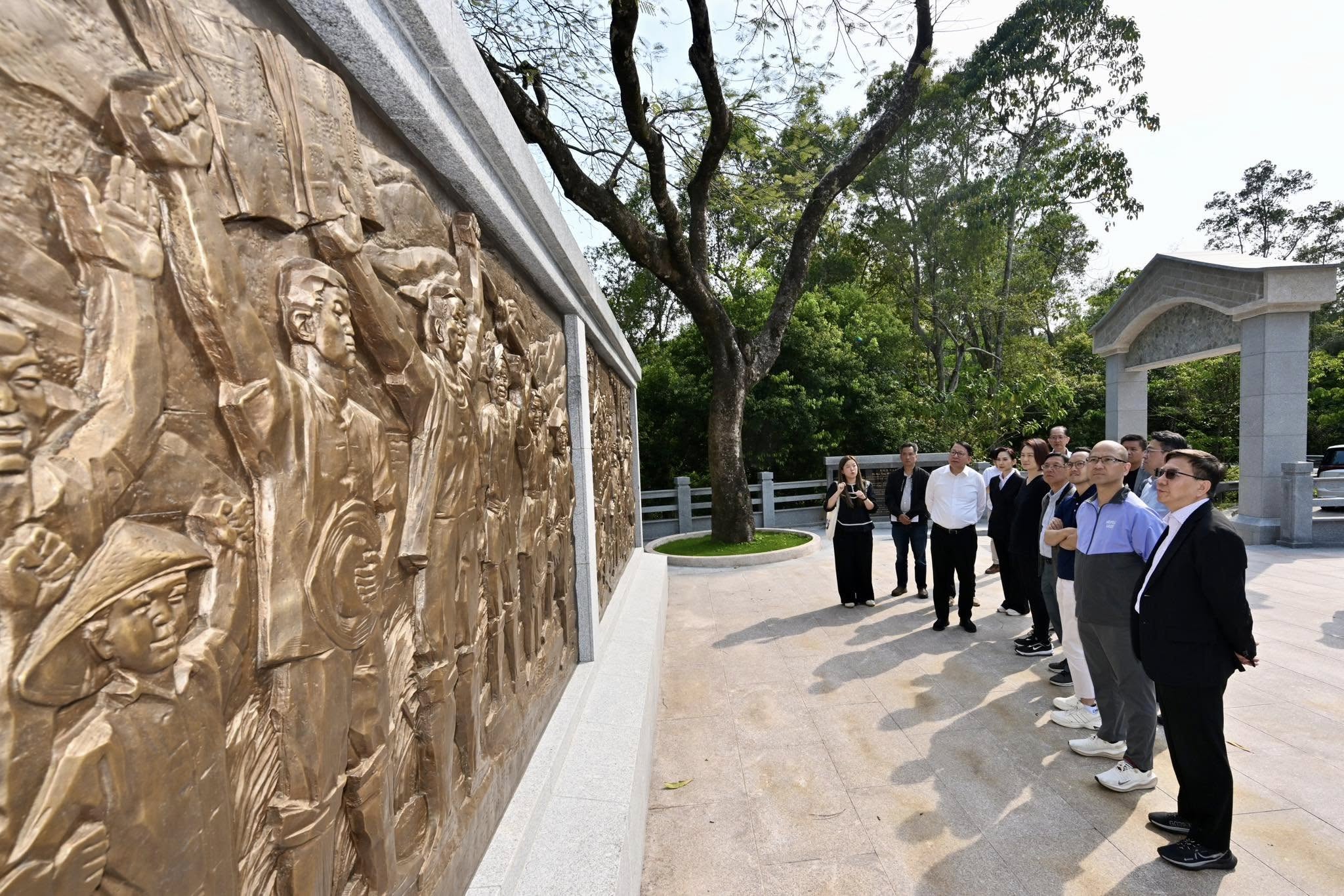 陳國基等人又走訪港九大隊重要據(jù)點之一的烏蛟騰村,以及九擔租村的交通站遺址。他表示,由他領(lǐng)導(dǎo)的「憲法和基本法推廣督導(dǎo)委員會」轄下的「愛國主義教育工作小組」在去年召開的會議上,已一致同意善用抗戰(zhàn)勝利80周年的契機,深化愛國主義教育,推動抗戰(zhàn)歷史教育。