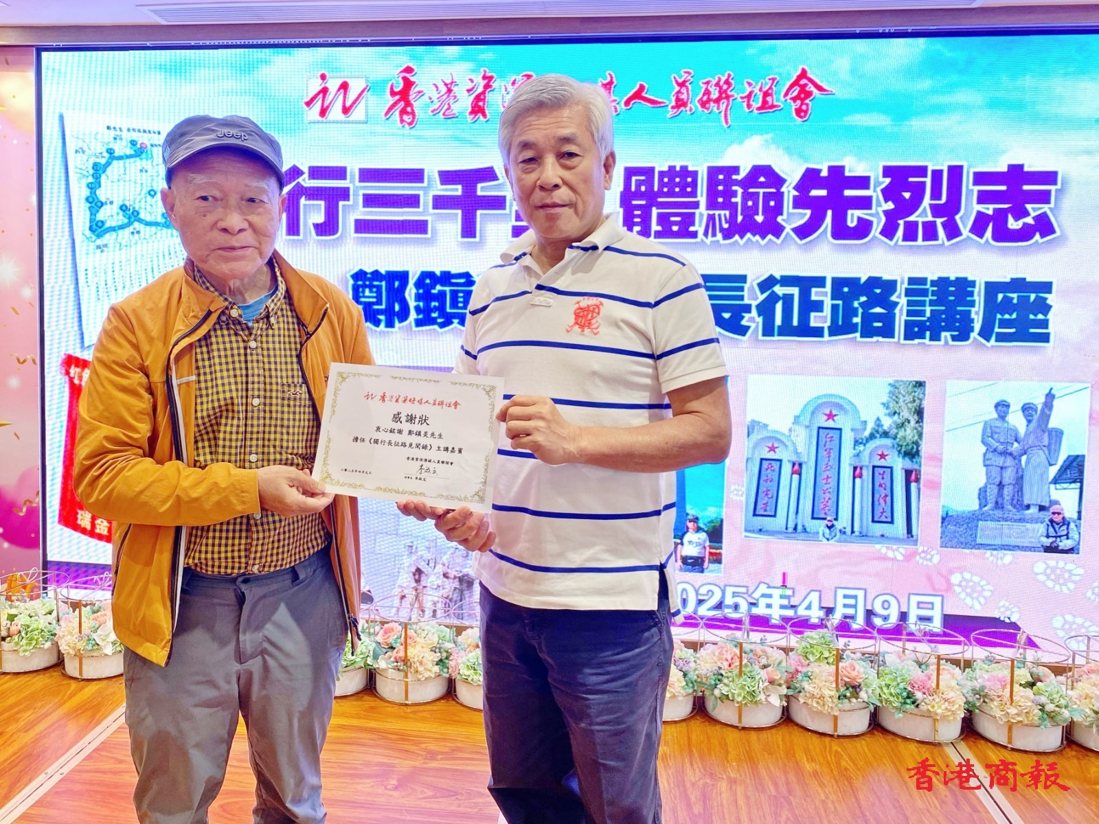 資深傳媒人鄭鎮(zhèn)炎去年10月至今年3月初,從紅軍長(zhǎng)征起點(diǎn)江西出發(fā),沿長(zhǎng)征路線徒步經(jīng)行廣東、湖南、廣西、貴州、四川等地直達(dá)雲(yún)南,行程3361公里。重踏紅軍長(zhǎng)征路,鄭鎮(zhèn)炎的家國情懷、意志和毅教力值得大大發(fā)揚(yáng)。香港資深傳媒人員聯(lián)誼會(huì)今日(9日)假銅鑼灣舉行《鄭鎮(zhèn)炎獨(dú)自徒步長(zhǎng) 征路見聞錄》講座,約150人出席,多位傳媒前高層出席。