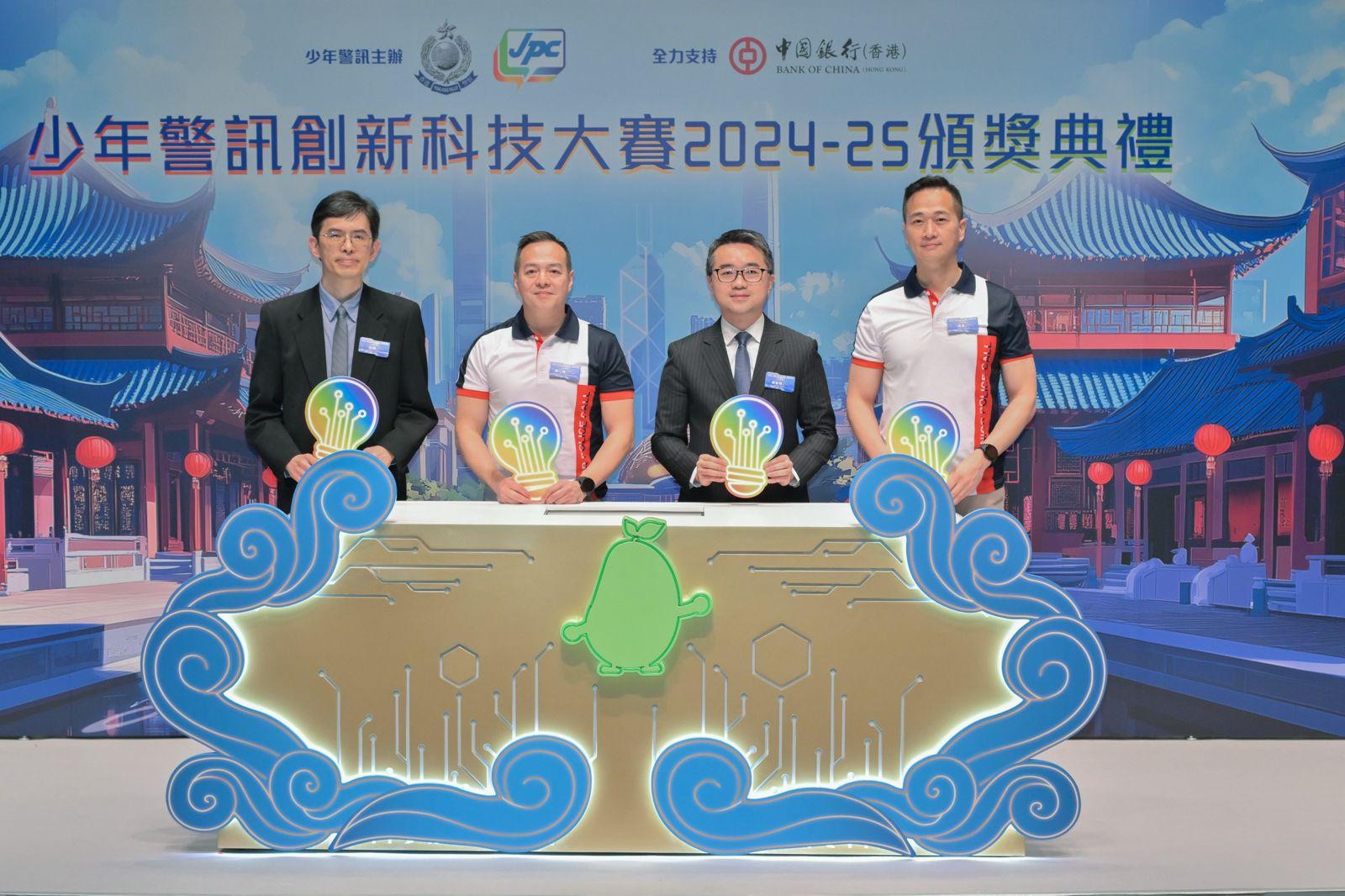 警務(wù)處處長周一鳴今日(12日)出席「少年警訊創(chuàng)新科技大賽2024-25」頒獎(jiǎng)典禮暨嘉年華,頒發(fā)70個(gè)奬項(xiàng)予110名得奬者。教育局副局長施俊輝、中國銀行(香港)資訊科技部總經(jīng)理翁暉及警務(wù)處行動(dòng)處處長陳東擔(dān)任主禮嘉賓。周一鳴寄予少年警訊推出更多創(chuàng)新活動(dòng),為國家和香港培育更多創(chuàng)科人才。