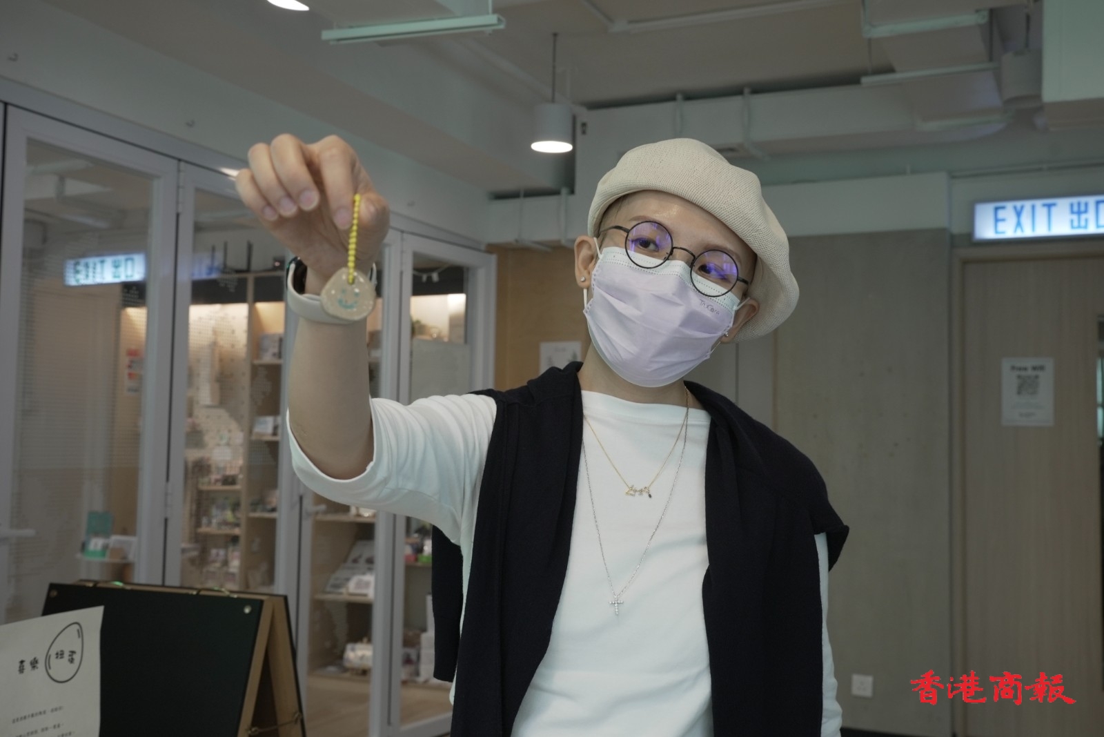 Ivy拿著她親手製作的陶瓷掛墜,觀展者可通過扭蛋機(jī)隨機(jī)獲得一枚並自行保留。
