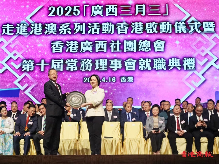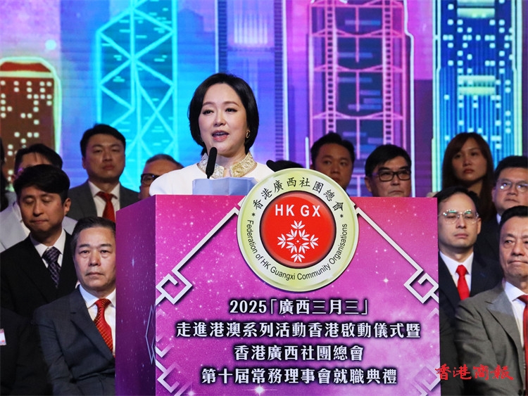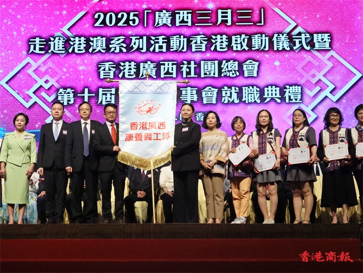 廣西壯族自治區(qū)黨委常委、統(tǒng)戰(zhàn)部部長王心富,香港廣西社團總會會長文頴怡出席活動並致辭?,F(xiàn)場舉行了香港廣西社團總會第十屆常務理事會就職典禮、2025「廣西三月三」走進港澳系列活動啟動儀式,並現(xiàn)場成立了香港廣西養(yǎng)生義工隊。記者 唐琳、歐陽萍/攝影 馮瀚文)