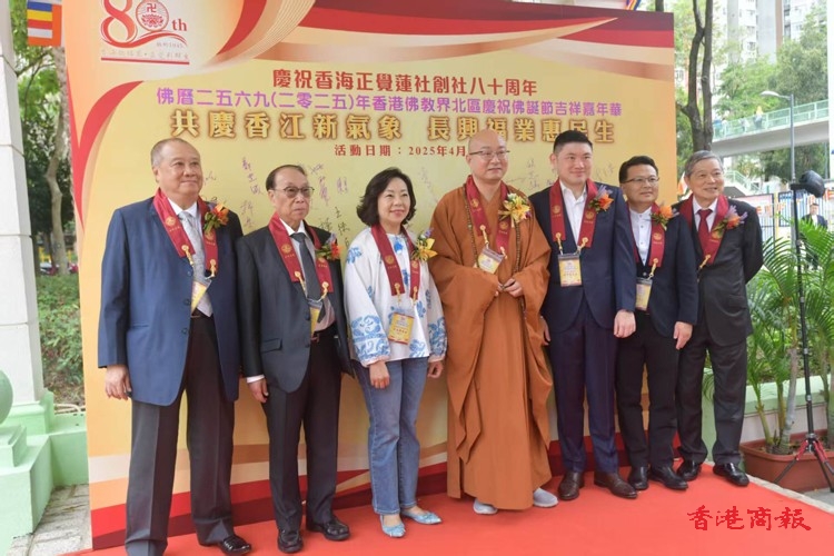 「香港佛教界北區(qū)慶祝佛誕節(jié)吉祥嘉年華」開幕禮暨浴佛大典,今早(27日)在新界上水花園天幕廣場(chǎng)隆重舉行。是次活動(dòng)由香海正覺蓮社與香港觀宗寺聯(lián)合主辦,香海正覺蓮社社長(zhǎng)、香港觀宗寺方丈宏明法師擔(dān)任大會(huì)主席。民政及青年事務(wù)局局長(zhǎng)麥美娟擔(dān)任主禮嘉賓,中央政府駐港聯(lián)絡(luò)辦協(xié)調(diào)部陳澤濤副部長(zhǎng)及新界工作部領(lǐng)導(dǎo)、港區(qū)全國(guó)人大代表、北區(qū)民政事務(wù)專員、區(qū)議會(huì)議員及各鄉(xiāng)事委員會(huì)主席等社會(huì)各界人士共同出席,與市民共迎佛誕,見證香港多元文化共融的獨(dú)特魅力。